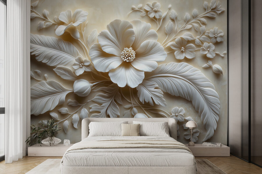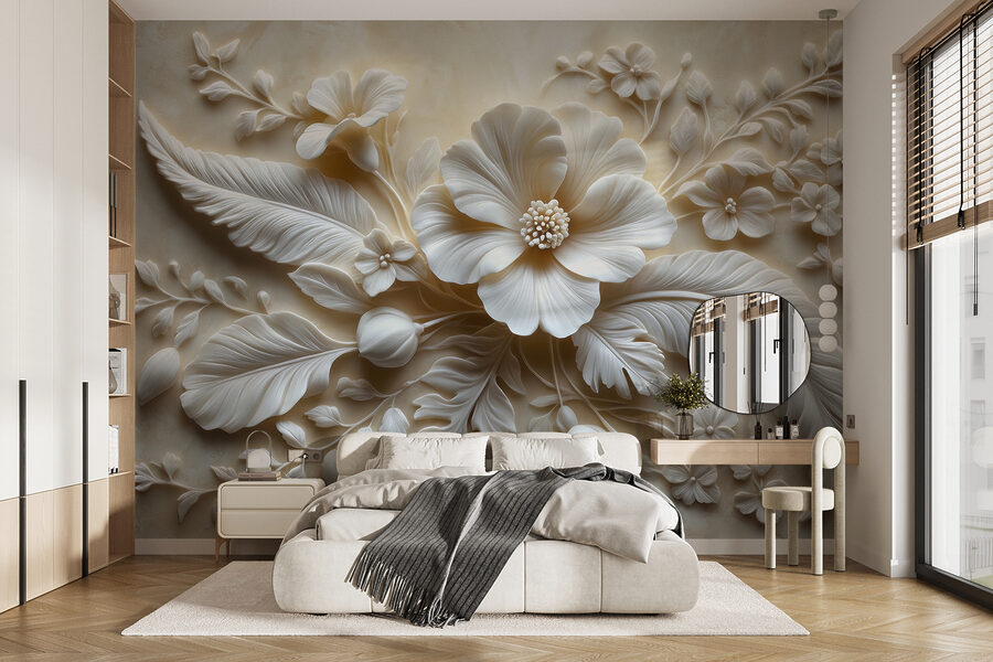 Verwandeln Sie jeden Raum in einen ruhigen Zufluchtsort mit dieser atemberaubenden Fototapete, die zarte weiße Blumen und üppige Blätter zeigt. Stellen Sie sich vor, Sie betreten Ihren Raum und fühlen sich sofort von der sanften Eleganz, die Sie umgibt, beflügelt. Es ist, als würde man einen Garten ins Haus holen – nur ohne die Gießkanne! Das verschlungene Design zieht die Blicke auf sich und regt zu Gesprächen an, wodurch es sich perfekt für eine gemütliche Ecke oder ein lebendiges Wohnzimmer eignet. Ihre Freunde werden sich wundern, wo Sie so ein Schmuckstück gefunden haben. Holen Sie sich die beruhigende Präsenz der Natur direkt nach Hause. Wer hätte gedacht, dass Wände so warm wirken können?