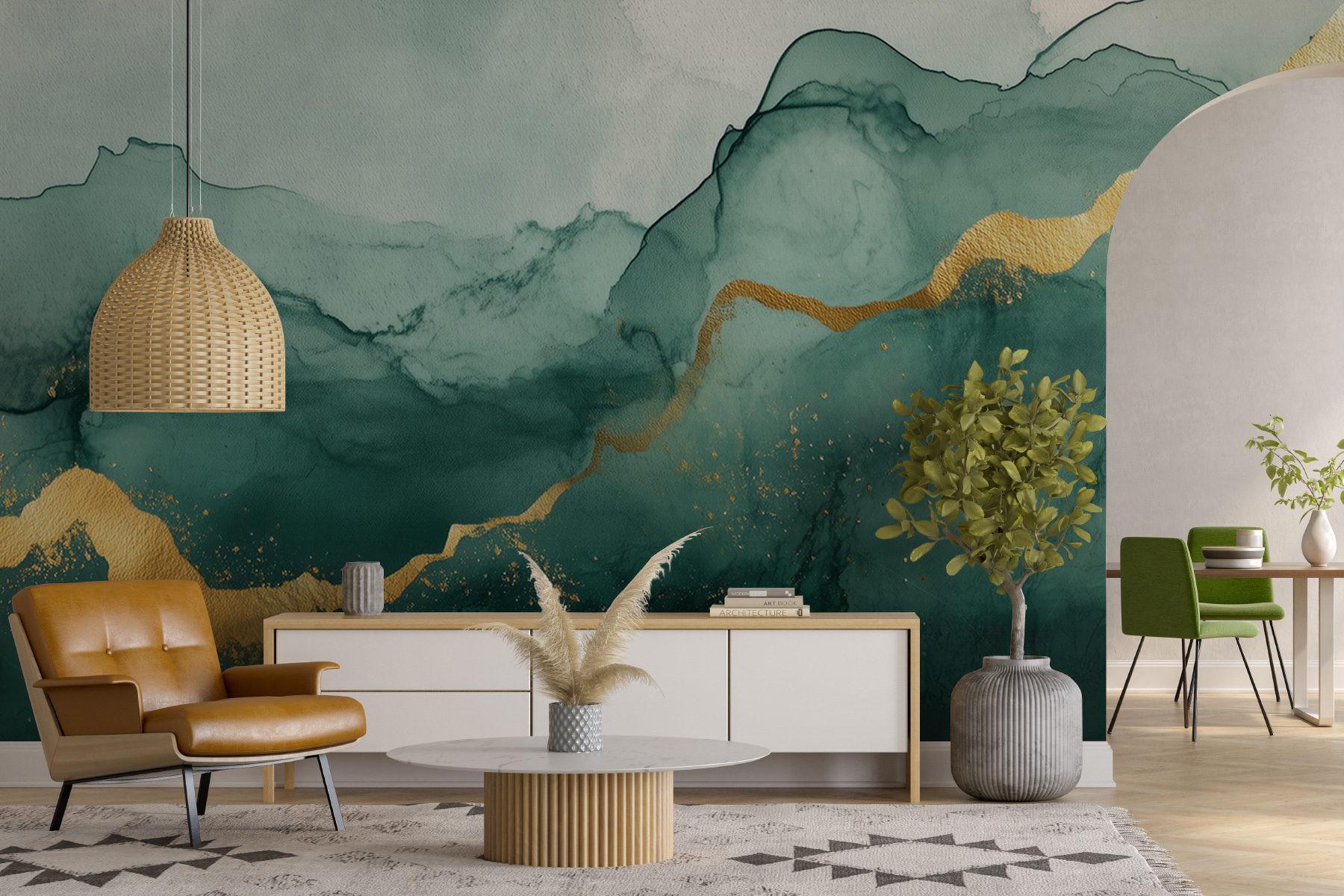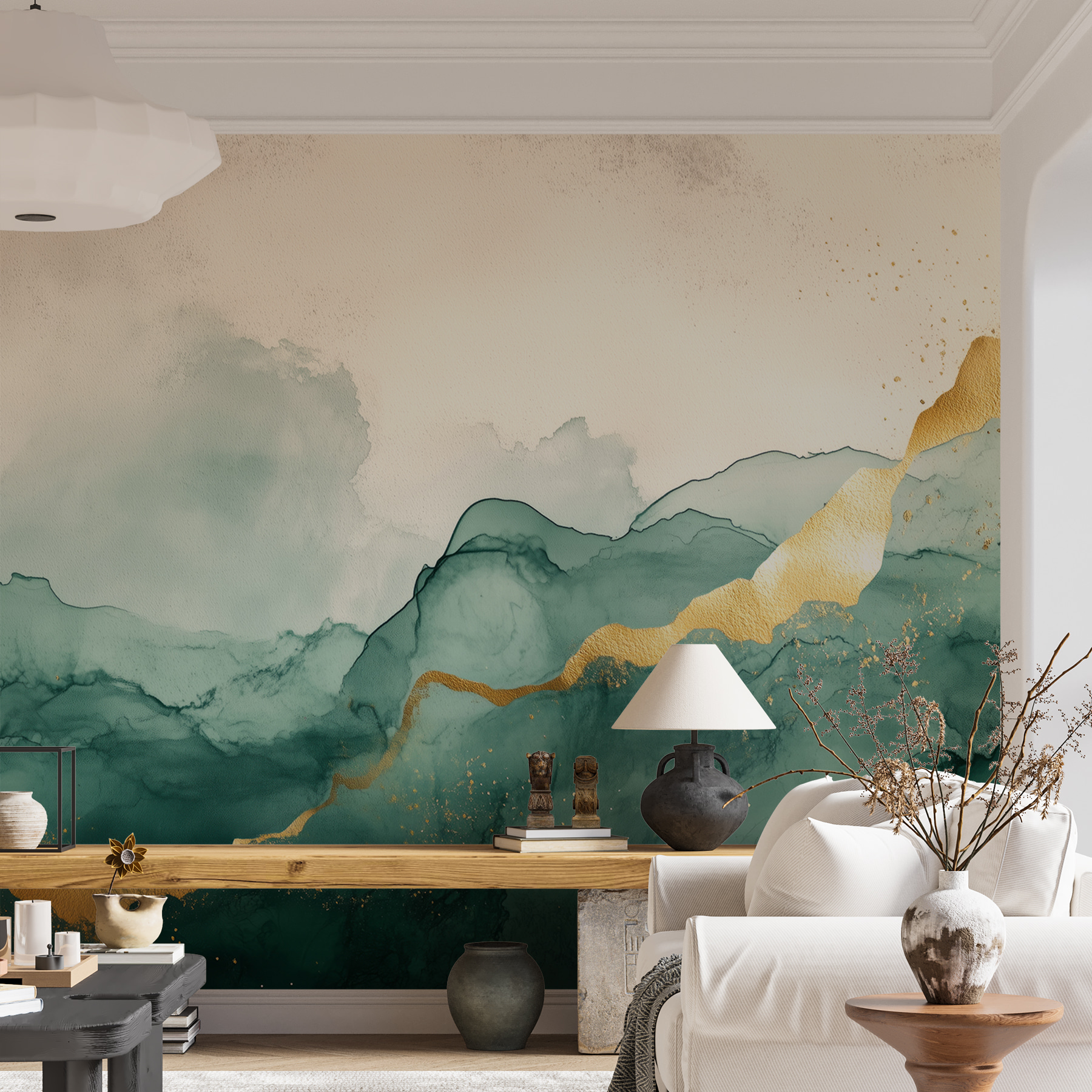 Verwandeln Sie Ihren Raum mit der atemberaubenden Fototapete “Misty Mountains”. Stellen Sie sich vor: Sie betreten einen Raum und werden von heiteren Berggipfeln begrüßt, die in beruhigendes Grün und warme Akzente gehüllt sind. Es ist wie ein kleiner Urlaub direkt an Ihrer Wand. Die Art und Weise, wie die Farben mühelos ineinander übergehen, kann die Stimmung total verändern – perfekt für gemütliche Abende oder fröhliche, heitere Zusammenkünfte. Stellen Sie sich vor, wie Sie an Ihrem Kaffee oder Tee nippen, auf diese verträumten Berge blicken und an Ihr nächstes Abenteuer denken. Dieses Wandbild ist nicht nur Dekoration, sondern ein Stück Ruhe, das Ihre Fantasie anregt.