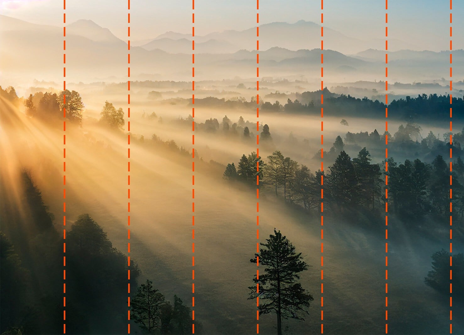 Ihre Tapete wird nach den von Ihnen während des Bestellvorgangs angegebenen Maßen angefertigt. Die Leinwand wird in praktische Abschnitte von jeweils bis zu 50 cm Breite unterteilt.