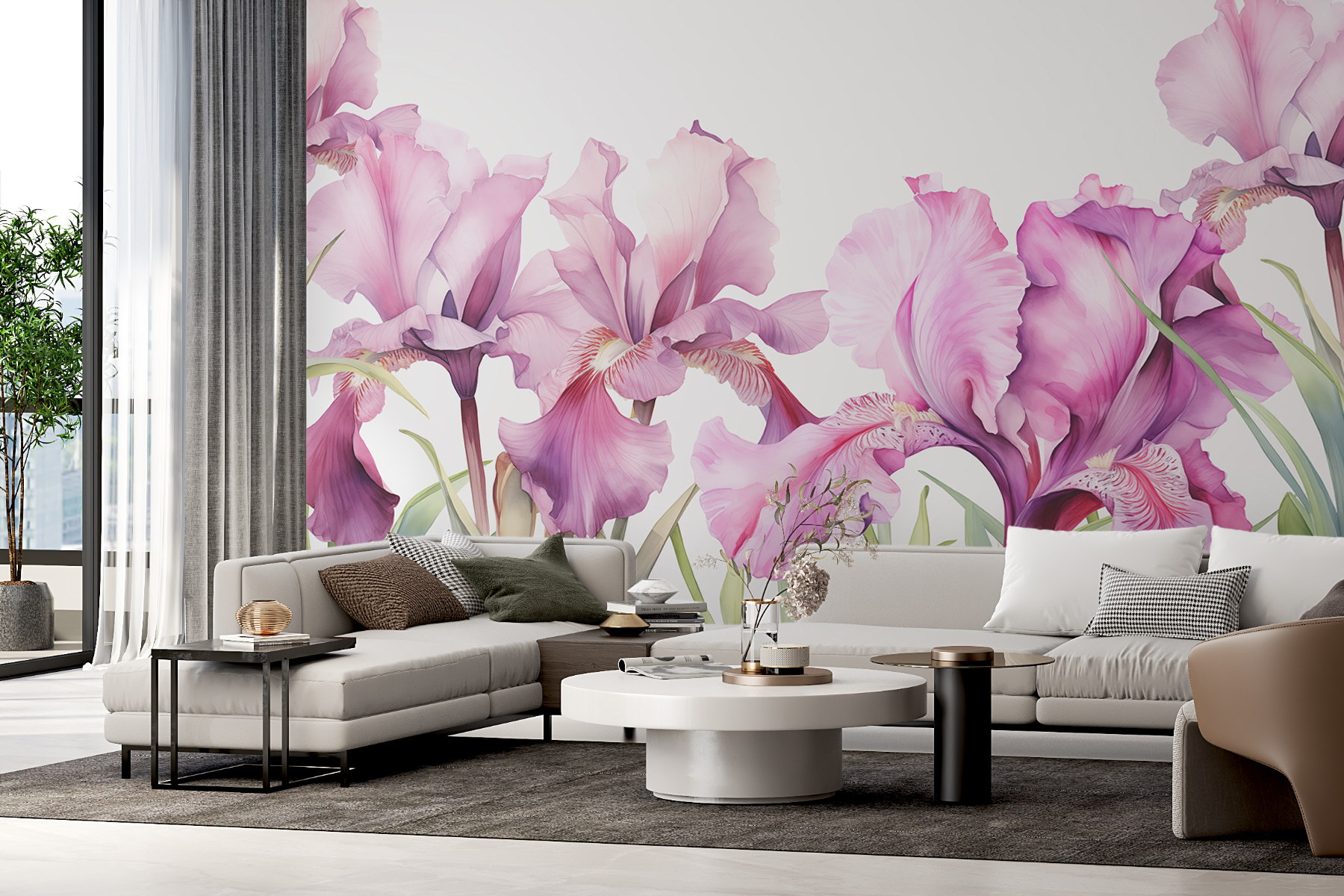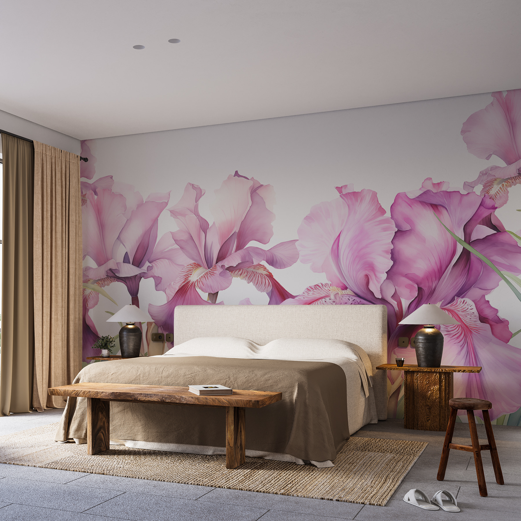 Verwandeln Sie jeden Raum in ein blühendes Paradies mit dieser atemberaubenden Fototapete mit lila Blumen. Stellen Sie sich vor, Sie betreten einen Raum, in dem sich leuchtende Schwertlilien sanft zu wiegen scheinen und Sie zu einer Gartenparty einladen – wie ein nicht ganz so stilles Geheimnis zwischen den Wänden. Es ist die perfekte Mischung aus Kunst und Natur, die eine gewöhnliche Wand in eine frische Oase verwandelt. Die Farben sind gerade sanft genug, um ein Gefühl der Ruhe zu vermitteln, und doch knallig genug, um die Sinne zu wecken. Perfekt für eine gemütliche Leseecke oder eine belebte Küche, ist dieses Wandbild das ganze Jahr über wie ein Hauch von Frühling. Man mag sagen, dass Sie einen guten Geschmack haben, aber seien wir ehrlich: Diese Fototapete ist der eigentliche Star der Show. Wer würde nicht gerne einen Kaffee schlürfen, während er von diesen schönen Blüten umgeben ist? Mit einem Hauch von Laune und einer Menge Charme spricht dieses Wandbild Bände, ohne ein Wort zu sagen.
