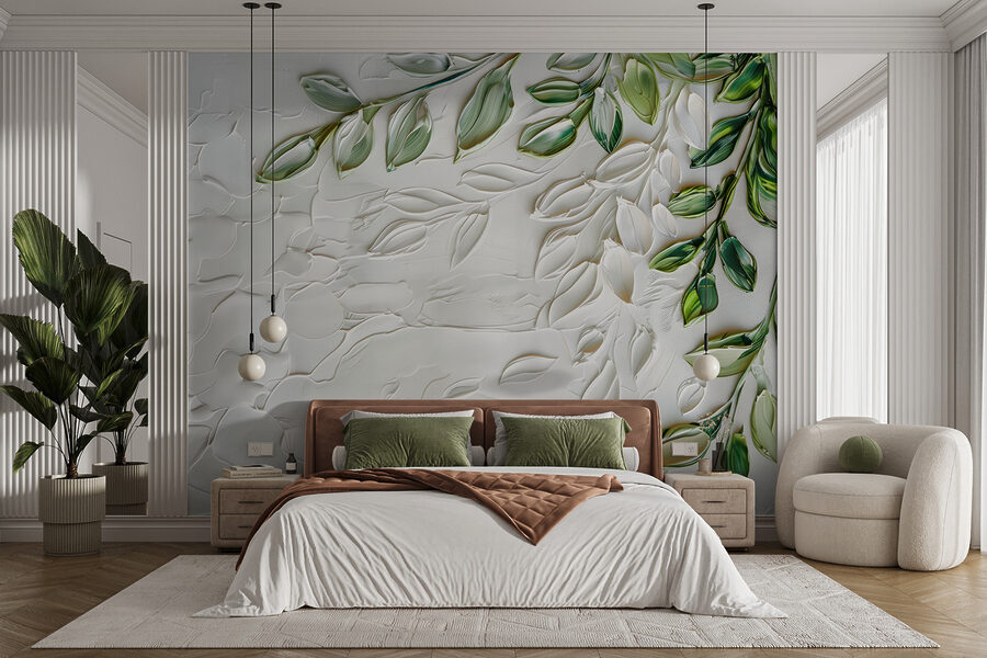 Hallo, sehen Sie sich diese bezaubernde Fototapete (w01470) an! Jedes Mal, wenn Sie den Raum betreten, ist es, als würden Sie einen ruhigen Garten betreten. Die Fototapete zeigt zarte grüne Blätter mit einem coolen 3D-Effekt – es fühlt sich fast so an, als könnte man sie berühren. Perfekt für alle, die von der Natur inspirierte Dekoration mit einem gewissen Pfiff lieben.
