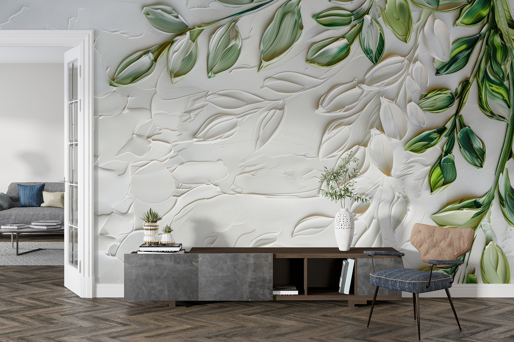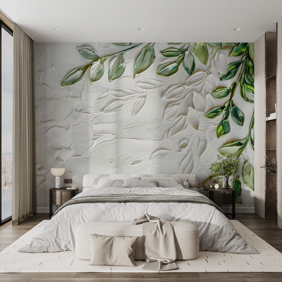Hallo, sehen Sie sich diese bezaubernde Fototapete (w01470) an! Jedes Mal, wenn Sie den Raum betreten, ist es, als würden Sie einen ruhigen Garten betreten. Die Fototapete zeigt zarte grüne Blätter mit einem coolen 3D-Effekt – es fühlt sich fast so an, als könnte man sie berühren. Perfekt für alle, die von der Natur inspirierte Dekoration mit einem gewissen Pfiff lieben.