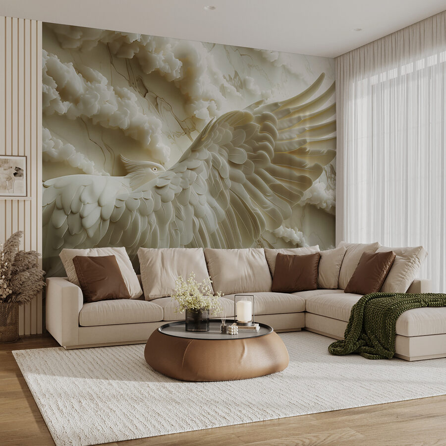 Es ist perfekt für die eine leere Wand, die nur darauf wartet, mit Kunst bespielt zu werden. Das einzigartige Design zieht die Blicke auf sich und regt zu Gesprächen und vielleicht auch zu Tagträumen an. Ob im Wohnzimmer oder im Büro, diese Fototapete wird eine leichte, luftige Atmosphäre verbreiten. Außerdem zaubert es Ihnen jedes Mal ein Lächeln ins Gesicht, wenn Sie daran vorbeigehen – wer würde sich nicht erhaben fühlen, wenn ein Vogel über Ihnen schwebt? Lassen Sie sich von der Schönheit des Fliegens inspirieren und hauchen Sie Ihren Wänden ein wenig Leben ein!