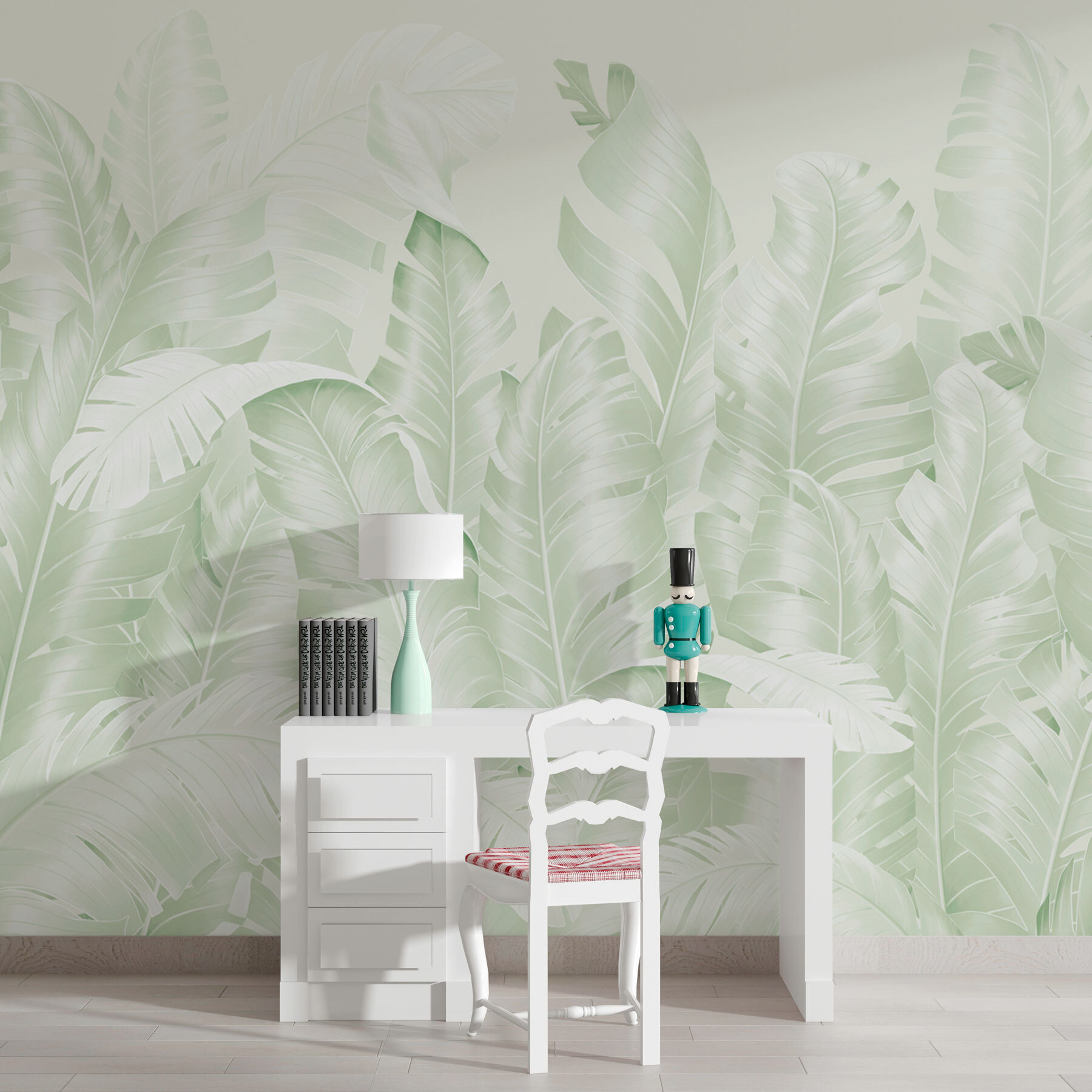 Verwandeln Sie Ihren Raum in eine heitere Oase mit dieser charmanten Fototapete, die eine üppige Gruppe von Blättern vor einem weichen weißen Hintergrund zeigt. Stellen Sie sich vor, dass Sie jedes Mal, wenn Sie den Raum betreten, in eine tropische Oase eintauchen. Die sanften Grün- und Weißtöne schaffen eine beruhigende Atmosphäre, in der man sich nach einem langen Tag entspannen kann. Es ist, als hätten Sie ein Stück Natur direkt an Ihren Wänden, das den Raum größer und einladender wirken lässt. Ihre Freunde werden sich fragen, ob Sie einen versteckten Garten haben. Außerdem passt es wunderbar zu jedem Einrichtungsstil. Stellen Sie sich vor, wie Sie hier Ihren Kaffee schlürfen, umgeben von der Ruhe der Natur – ein wahres Glücksgefühl!