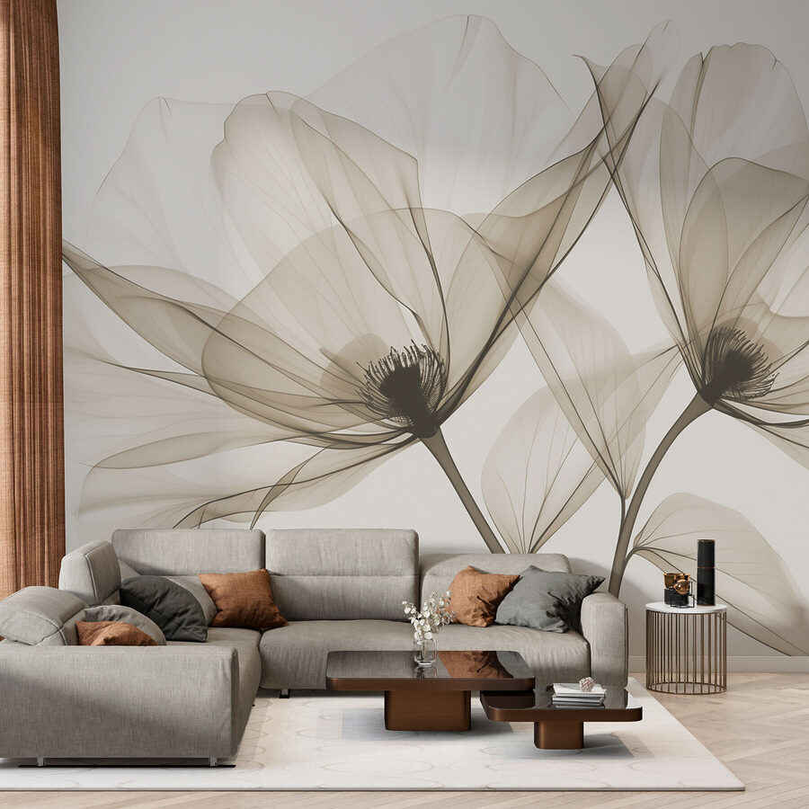 Verwandeln Sie eine schlichte Wand in eine ruhige Oase mit dieser atemberaubenden Fototapete, die elegante sepiafarbene Blüten zeigt. Stellen Sie sich vor, Sie betreten einen gemütlichen Raum, der Komfort und Raffinesse ausstrahlt. Die weichen, fließenden Linien der Blumen scheinen zu tanzen und laden dazu ein, an Frühlingstage und warmes Sonnenlicht zu denken, das durch die Blätter fällt. Es ist, als ob man sich ein Stück Natur ins Haus holt, ohne die Gießkanne zu benutzen. Ob im Wohnzimmer, im Schlafzimmer oder sogar in einer ruhigen Leseecke, diese zarten Blüten schaffen eine heitere Stimmung, in der man es sich mit einem guten Buch gemütlich machen kann – oder einfach nur die Schönheit genießen.