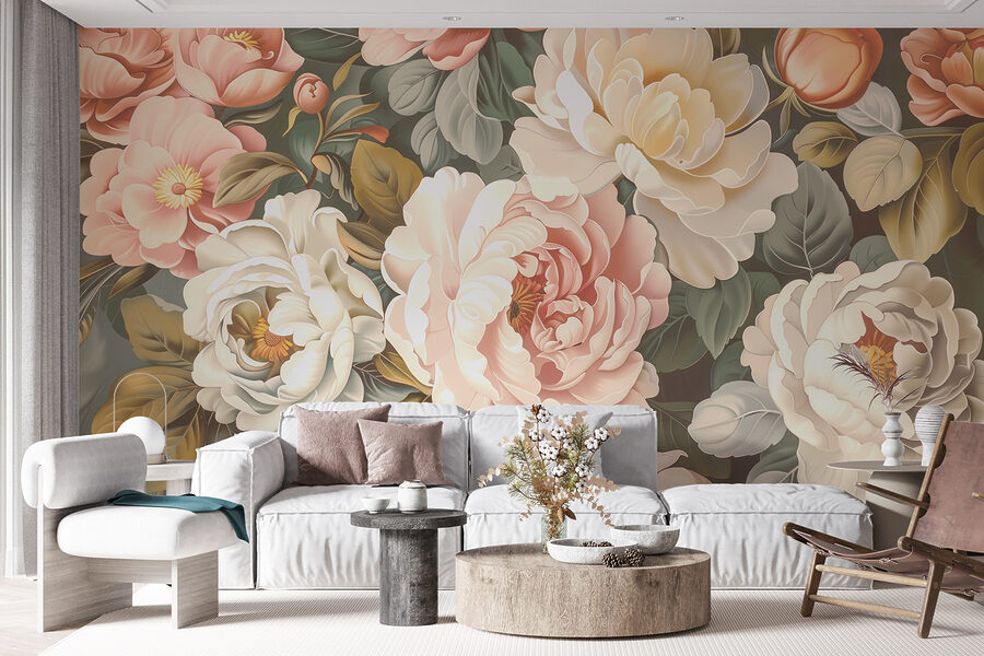 Verwandeln Sie jeden Raum mit “Eternal Bloom of Timeless Beauty”. Dieses Wandbild ist nicht nur ein Kunstwerk, sondern eine botanische Flucht. Stellen Sie sich vor, Sie betreten jedes Mal einen üppigen Garten, wenn Sie vorbeigehen. Die prächtigen Pfingstrosen, die sich aufplustern und vor Farbe nur so strotzen, wirken fast so, als wollten sie mit Ihnen ins Gespräch kommen. Es ist wie eine florale Umarmung an Ihren Wänden, die Wärme und Freude bringt. Ideal für eine gemütliche Café-Ecke oder ein sonnendurchflutetes Wohnzimmer, lädt diese Fototapete zum Entspannen und Durchatmen ein. Wer wünscht sich nicht eine solche Atmosphäre? Es ist nicht nur Dekoration, es ist ein Erlebnis, das man erleben kann.
