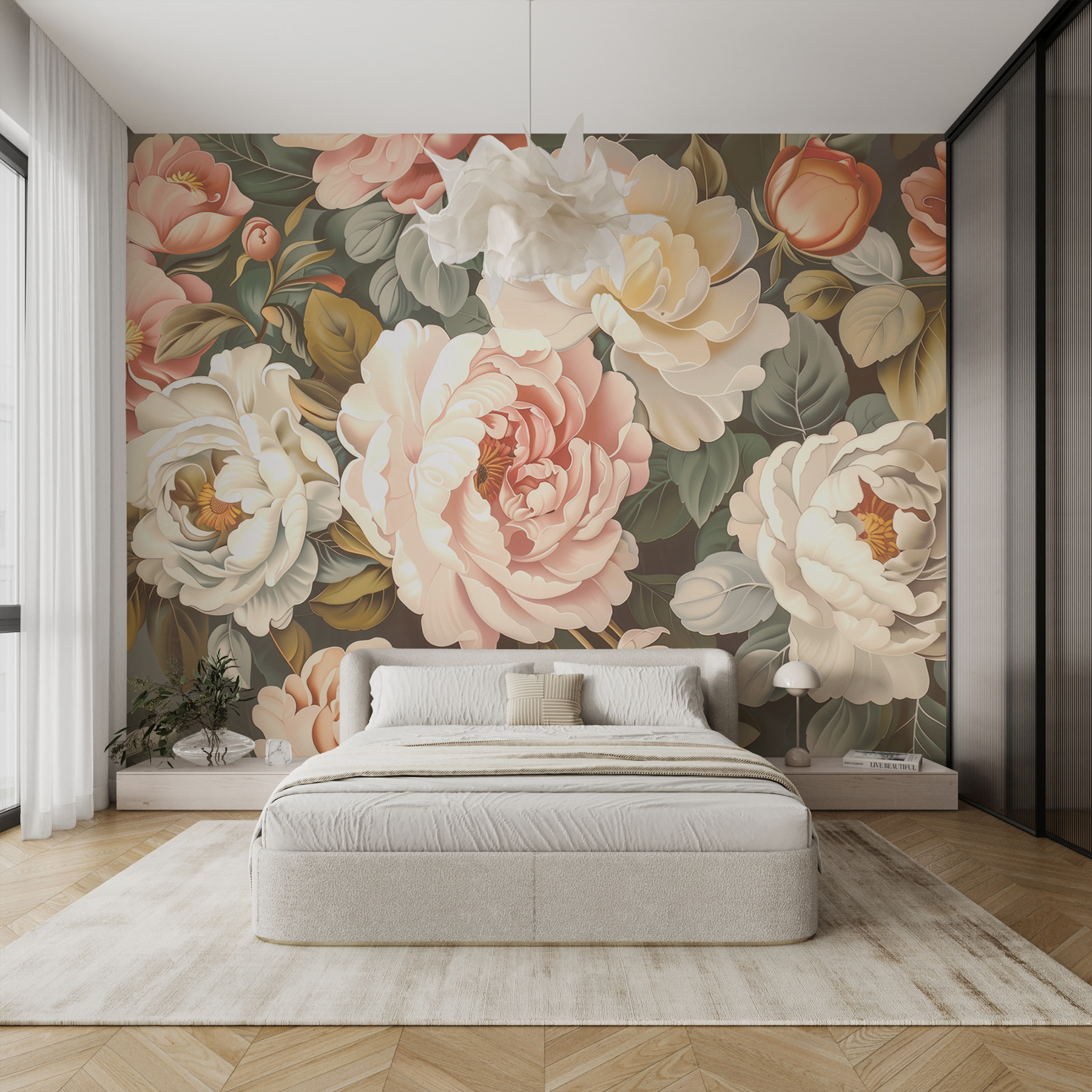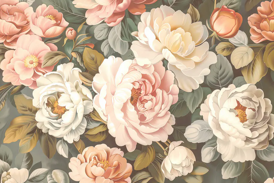 Verwandeln Sie jeden Raum mit “Eternal Bloom of Timeless Beauty”. Dieses Wandbild ist nicht nur ein Kunstwerk, sondern eine botanische Flucht. Stellen Sie sich vor, Sie betreten jedes Mal einen üppigen Garten, wenn Sie vorbeigehen. Die prächtigen Pfingstrosen, die sich aufplustern und vor Farbe nur so strotzen, wirken fast so, als wollten sie mit Ihnen ins Gespräch kommen. Es ist wie eine florale Umarmung an Ihren Wänden, die Wärme und Freude bringt. Ideal für eine gemütliche Café-Ecke oder ein sonnendurchflutetes Wohnzimmer, lädt diese Fototapete zum Entspannen und Durchatmen ein. Wer wünscht sich nicht eine solche Atmosphäre? Es ist nicht nur Dekoration, es ist ein Erlebnis, das man erleben kann.