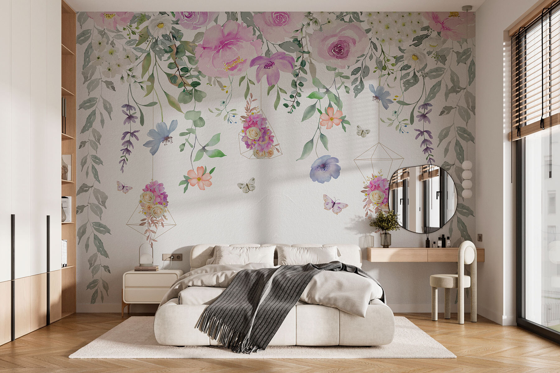 Treten Sie ein in eine Welt voller Farben und Charme mit dieser Fototapete, die bezaubernde Blumen und flatternde Schmetterlinge zeigt. Stellen Sie sich vor, wie sich Ihr Raum verwandelt – es ist wie ein geheimer Garten direkt an Ihrer Wand. Die sanften Aquarellfarben fügen sich wunderbar ein und vermitteln ein Gefühl von Ruhe und Freude. Stellen Sie sich vor, wie Sie mit dieser fröhlichen Szene im Hintergrund einen Tee trinken oder ein Buch lesen, das selbst die trübsten Tage aufhellt. Und die Schmetterlinge? Sie sorgen für einen verspielten Touch, der zum Lächeln einlädt. Dieses Wandbild dekoriert nicht nur, es haucht jedem Raum Leben ein und verwandelt ihn in eine kleine Oase der Freude. Es eignet sich perfekt zur Verschönerung einer Küche, einer gemütlichen Ecke oder sogar eines Kinderzimmers und bringt die Natur ins Haus, ohne dass man einen grünen Daumen braucht. Vielleicht ertappen Sie sich sogar dabei, dass Sie ein bisschen öfter träumen!