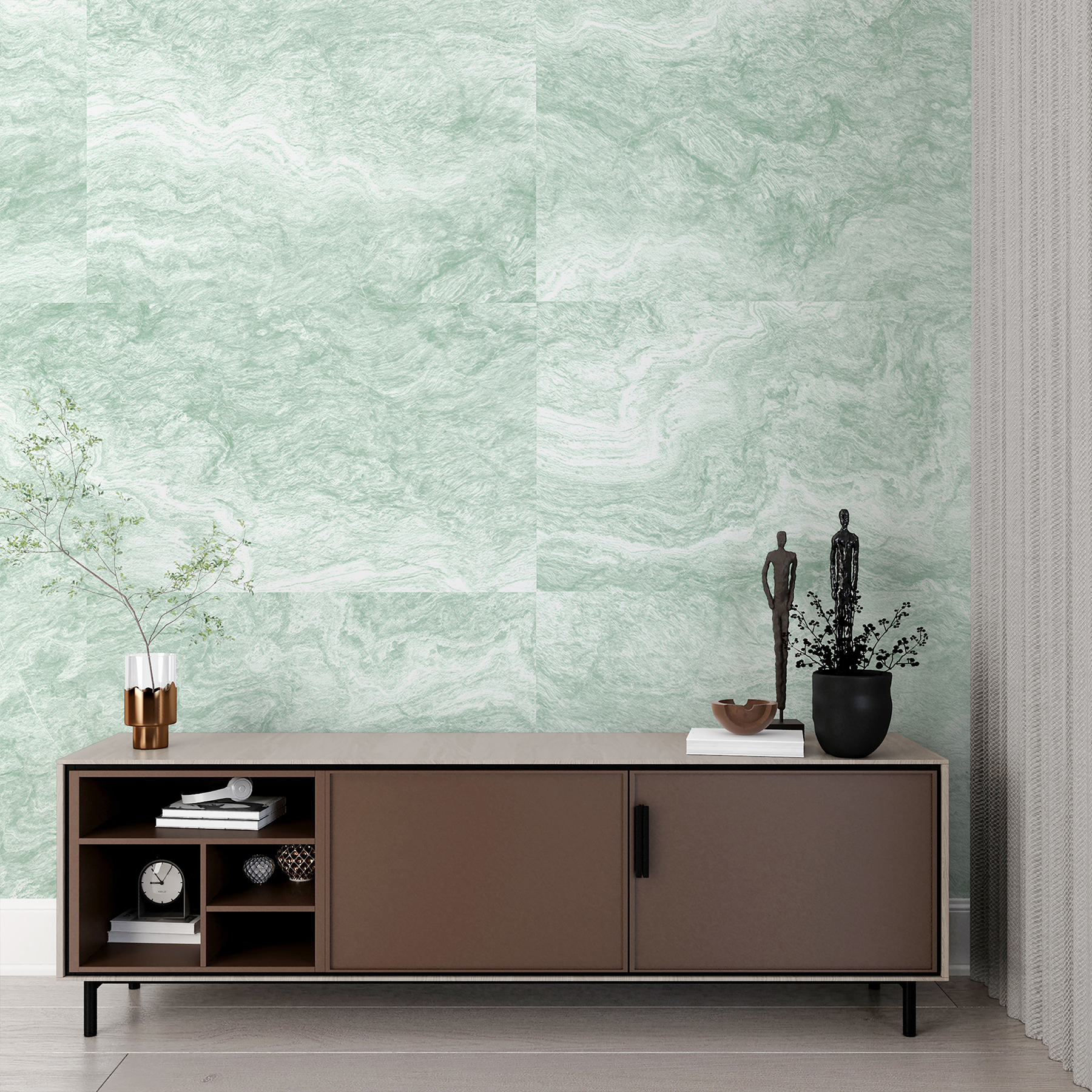 Stellen Sie sich vor, eine sanfte Brise weht durch Ihr Zimmer und flüstert Ihnen Ruhe zu. Das ist es, was “Serenity in Green Marble Waves” ausmacht. Dieses Wandbild mit seinen weichen, fließenden Linien bringt Ruhe und einen Hauch von Natur ins Haus. Perfekt für alle, die eine Mischung aus abstrakter Kunst und erdiger Atmosphäre lieben. Es ist, als würden Sie Ihre Wände in einen heiteren Wellness-Tag einhüllen – nur ohne die Gurkenscheiben. Leicht aufzutragen, wie eine Umarmung für Ihren Raum. Wer hätte gedacht, dass Wände ausatmen können? Tauchen Sie ein in Ihre eigene Oase mit einem einfachen Abziehen und Aufkleben.