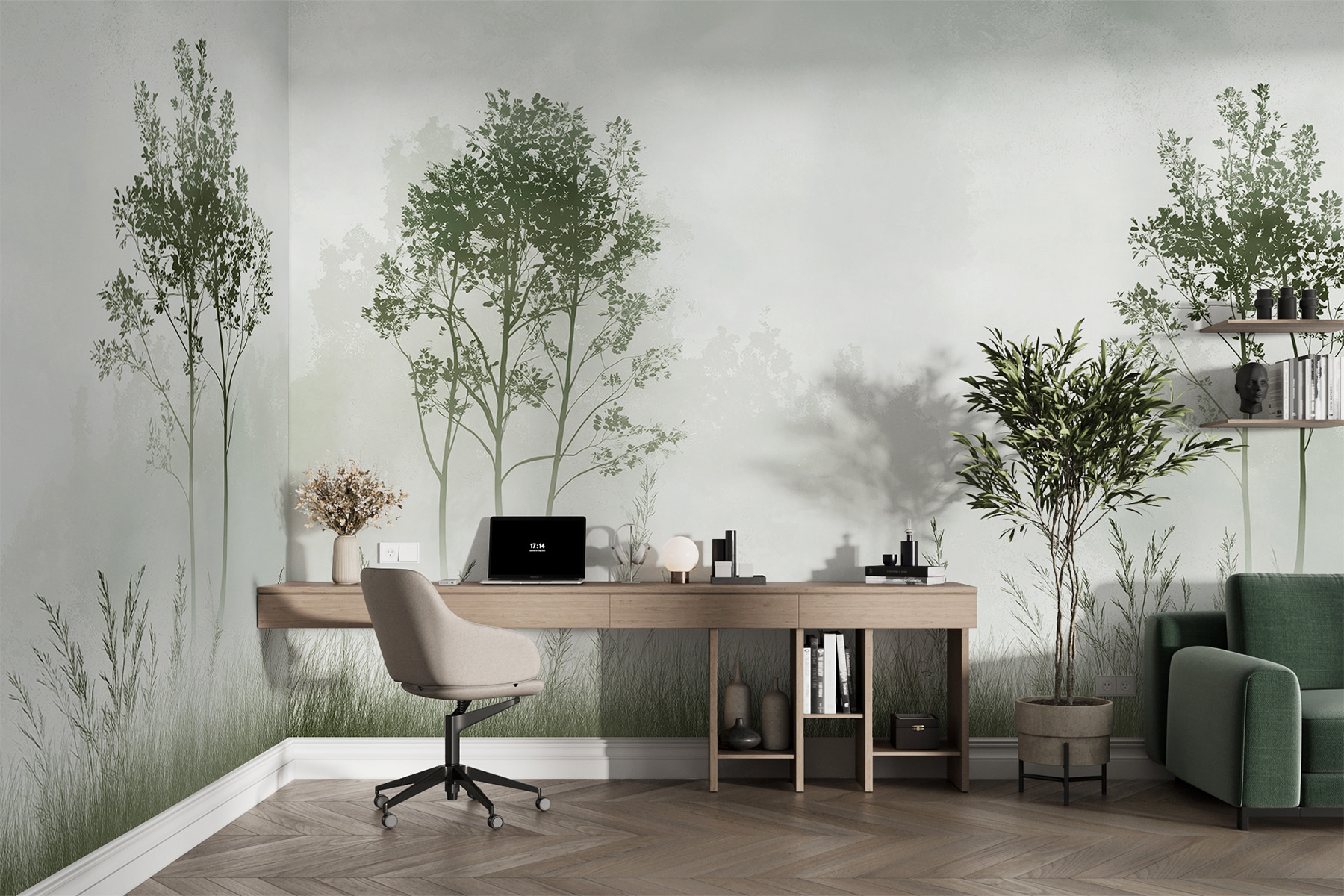 Sehen Sie sich vor dem Kauf genau an, wie Ihr Raum mit einer neuen Tapete aussehen wird. Professionelle Visualisierung durch erfahrene Designer ohne Kosten oder Kaufverpflichtung.