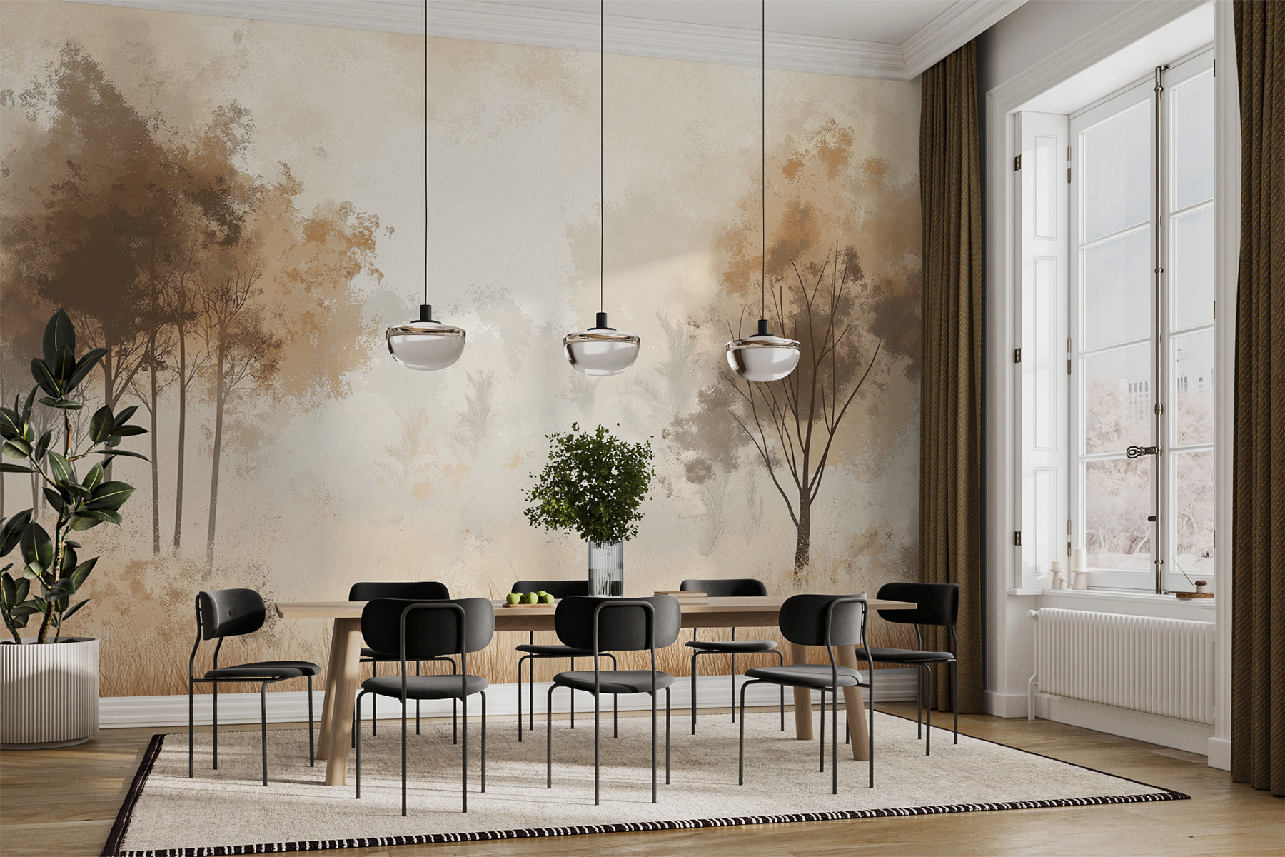 Hier ist etwas Besonderes: eine Fototapete, die einen nebligen Wald einfängt – Bäume, die sich in die Höhe recken, Nebel, der sie umspielt, Gras, das sich sanft wiegt. Perfekt, um jeden Raum in einen flüsternden, waldigen Rückzugsort zu verwandeln. Es ist, als würde man direkt in ein Märchen eintauchen, nur ohne die sprechenden Tiere (leider). Morgens, mit dem Kaffee in der Hand, kann man fast den Tau riechen. Naturliebhaber, Ihre leere Wand hat gerade ihre Berufung gefunden. Stellen Sie sich vor, die Gäste kommen herein und sagen: “Wo ist Narnia?” Es ist eine Atmosphäre, nicht nur eine Wandmalerei.