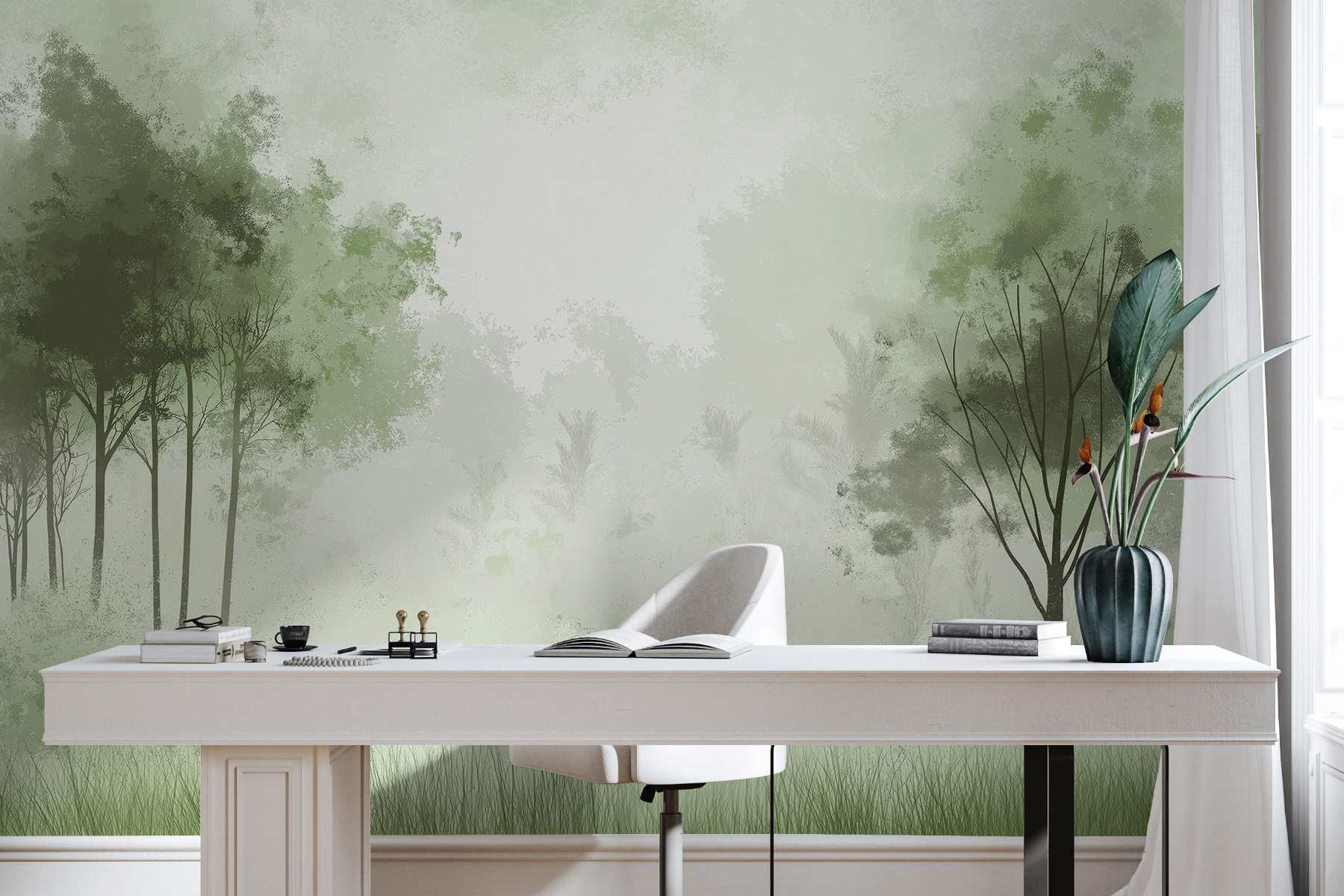 Stellen Sie sich vor, Sie betreten einen Raum und haben sofort das Gefühl, dass Sie in einen nebligen Morgenwald geraten sind. Dieses Wandbild “Foggy Forest with Trees” macht genau das – es ist wie eine sanfte Umarmung der Natur, direkt an Ihrer Wand. Perfekt für alle, die die Ruhe des Waldes lieben, aber auf die Mücken verzichten möchten. Die sanften, gedämpften Grüntöne und der geheimnisvolle Nebel schaffen eine beruhigende Atmosphäre und sind ideal, um nach einem hektischen Tag zu entspannen. Vielleicht starrt auch Ihre Katze die Wand an, weil sie glaubt, dass sich irgendwo ein Eichhörnchen versteckt. Unerwarteter Charme, garantiert.