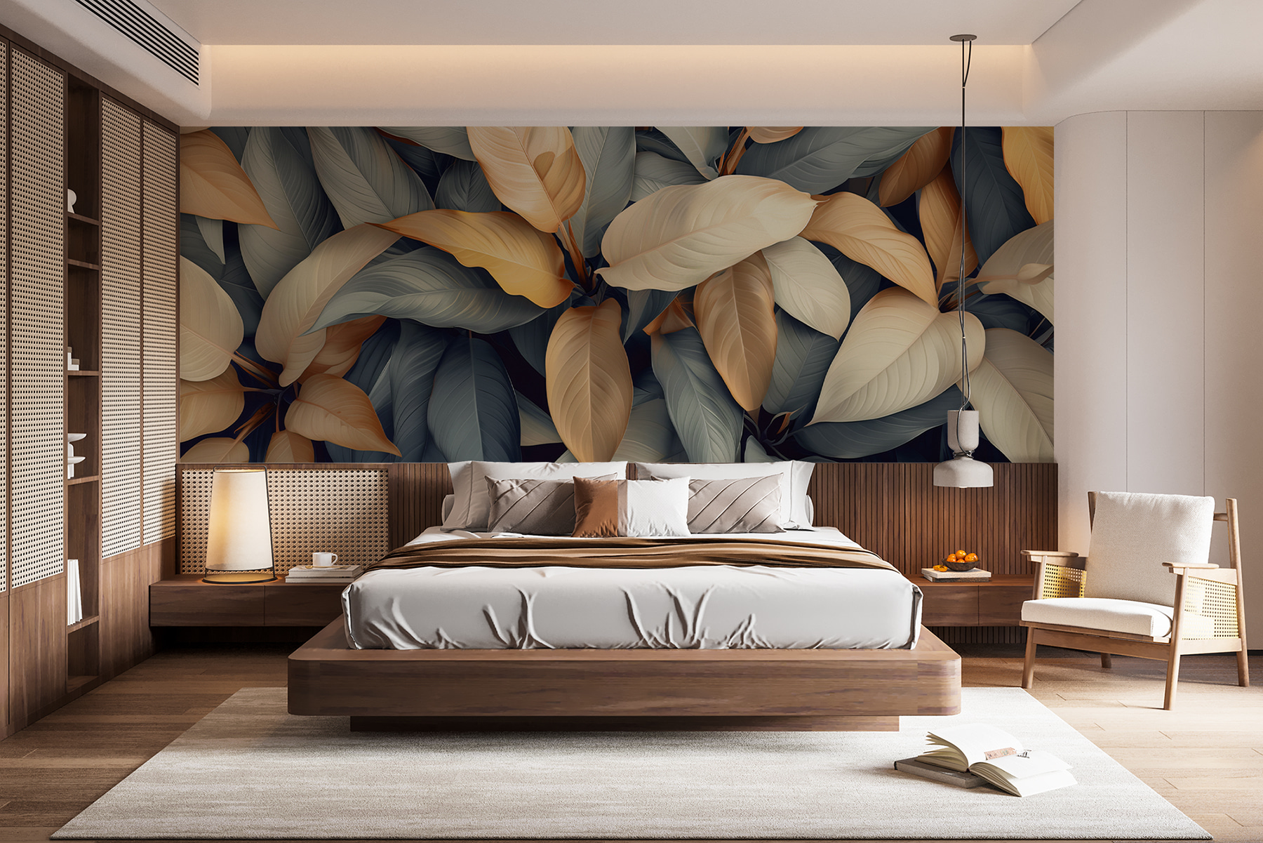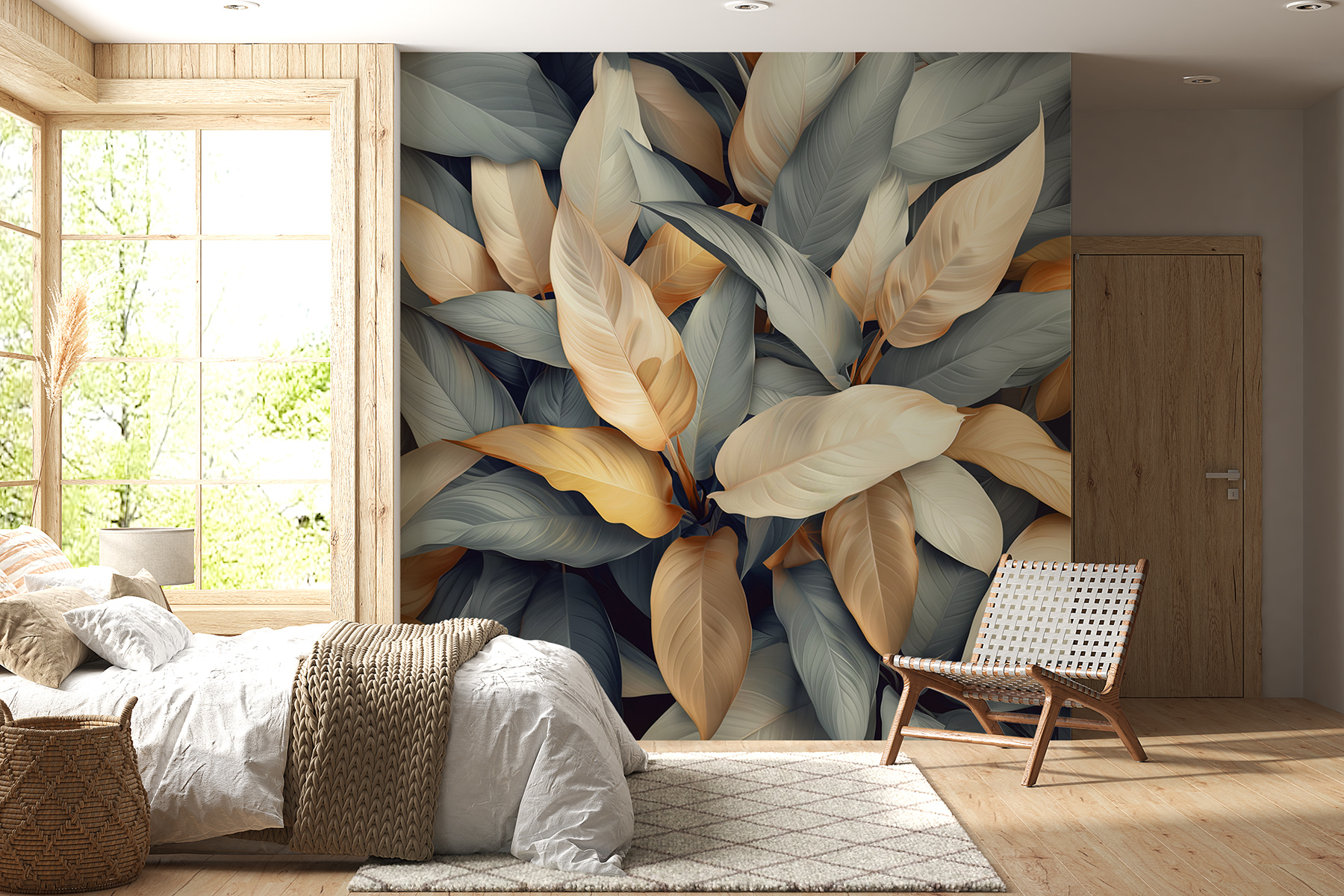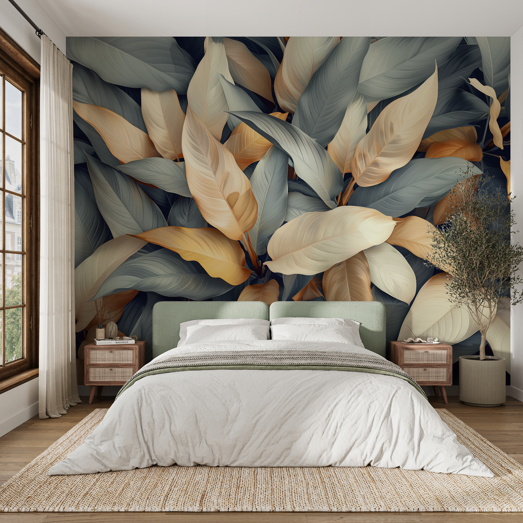 Verwandeln Sie Ihren Raum mit dieser atemberaubenden Wandtapete mit bunten Blättern. Stellen Sie sich vor, Sie betreten einen Raum, in dem die Natur zum Leben erwacht und Sie in Wärme und Ruhe einhüllt. Bei jedem Blick tanzen diese sanften Creme- und Goldtöne gegen kühle Töne und schaffen eine beruhigende und doch lebendige Atmosphäre. Es ist, als ob man sich die Natur ins Haus holt, ohne auch nur eine einzige Pflanze gießen zu müssen! Dieses Wandbild ist ideal für eine gemütliche Leseecke oder ein lebhaftes Büro und lässt jeden Tag wie einen erfrischenden Spaziergang durch einen üppigen Garten erscheinen. Die Mischung der Farben hebt die Stimmung und inspiriert, so dass es perfekt zu jedem passt, der sich einen einladenden Rückzugsort schaffen möchte. Wundern Sie sich nicht, wenn Sie sich inmitten der Blätter beim Träumen ertappen – es ist einfach eines dieser Wandbilder, das Sie in seinen Bann zieht!