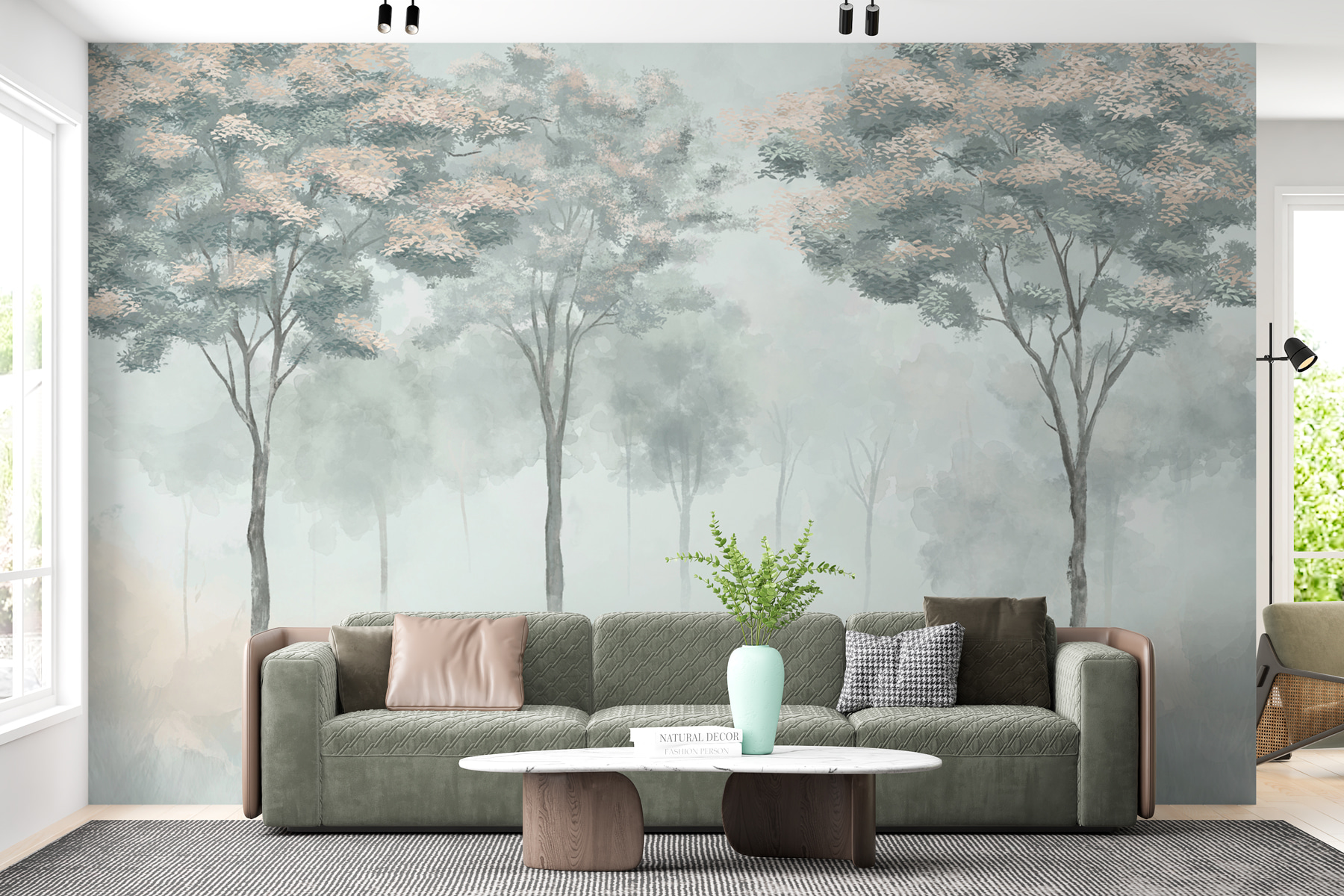 Stellen Sie sich vor, Sie betreten einen Raum und befinden sich plötzlich in einem magischen Wald, in dem die Bäume im Nebel ihre Geheimnisse flüstern. Genau so fühlt sich diese Fototapete an – ruhig, geheimnisvoll und einfach ein bisschen bezaubernd. Perfekt für Naturliebhaber oder alle, die eine ruhige Ecke in ihrem hektischen Leben brauchen. Es ist wie eine Umarmung für Ihre Wände! Vielleicht kommen Freunde zu Besuch, nur um die Ruhe zu genießen. Und wissen Sie was? Es ist mehr als nur eine Kulisse – es ist ein ganzes Lebensgefühl. Im Ernst, wer wünscht sich nicht ein bisschen Wunder in seinem Tag?
