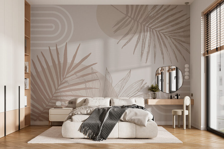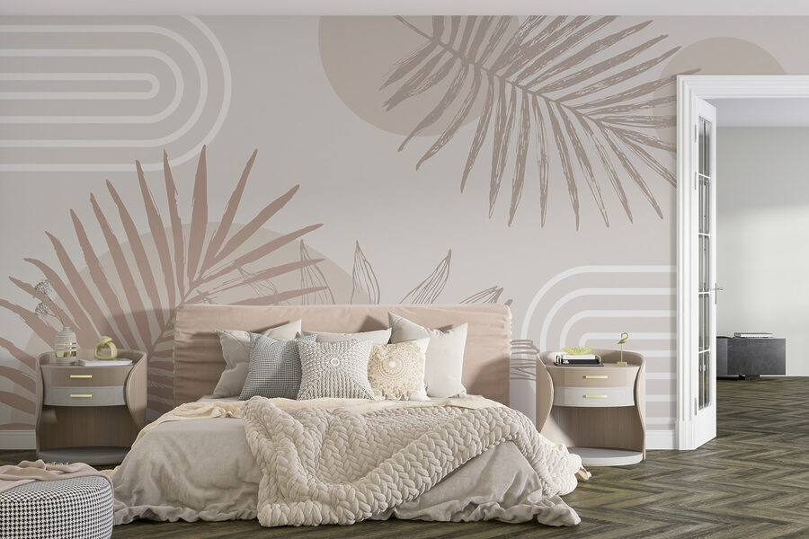Sehen Sie sich diese tolle Fototapete an – neutrale Töne mit flippigen geometrischen Formen und Palmenblättern. Stellen Sie sich vor: ein fauler Sonntagmorgen mit einem Kaffee in der Hand und der ruhigen Atmosphäre, die diese Fototapete ausstrahlt. Es ist wie ein Mini-Urlaub direkt an Ihrer Wand. Perfekt für alle, die sich nach den Tropen sehnen, ohne einen Jetlag zu haben. Ganz gleich, ob Sie Ihr Wohnzimmer umgestalten oder Ihr Arbeitszimmer verschönern wollen, dieses Design verleiht Ihnen einen Hauch von Stil und flüstert Ihnen zu: “Entspannen Sie sich, Sie sind zu Hause.” Ihre Wände werden es lieben!