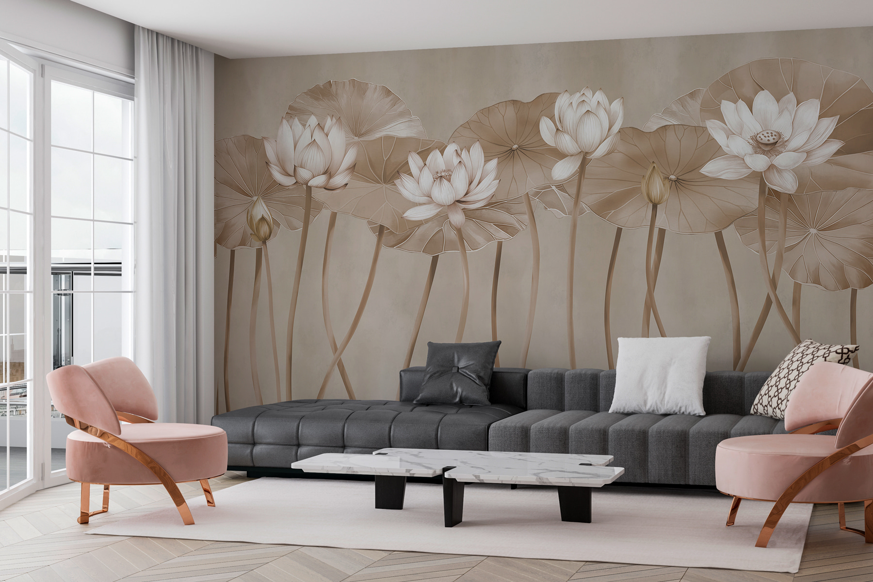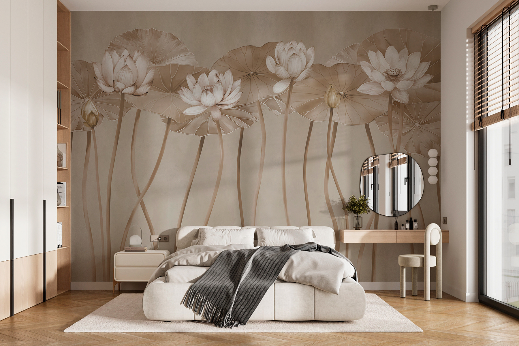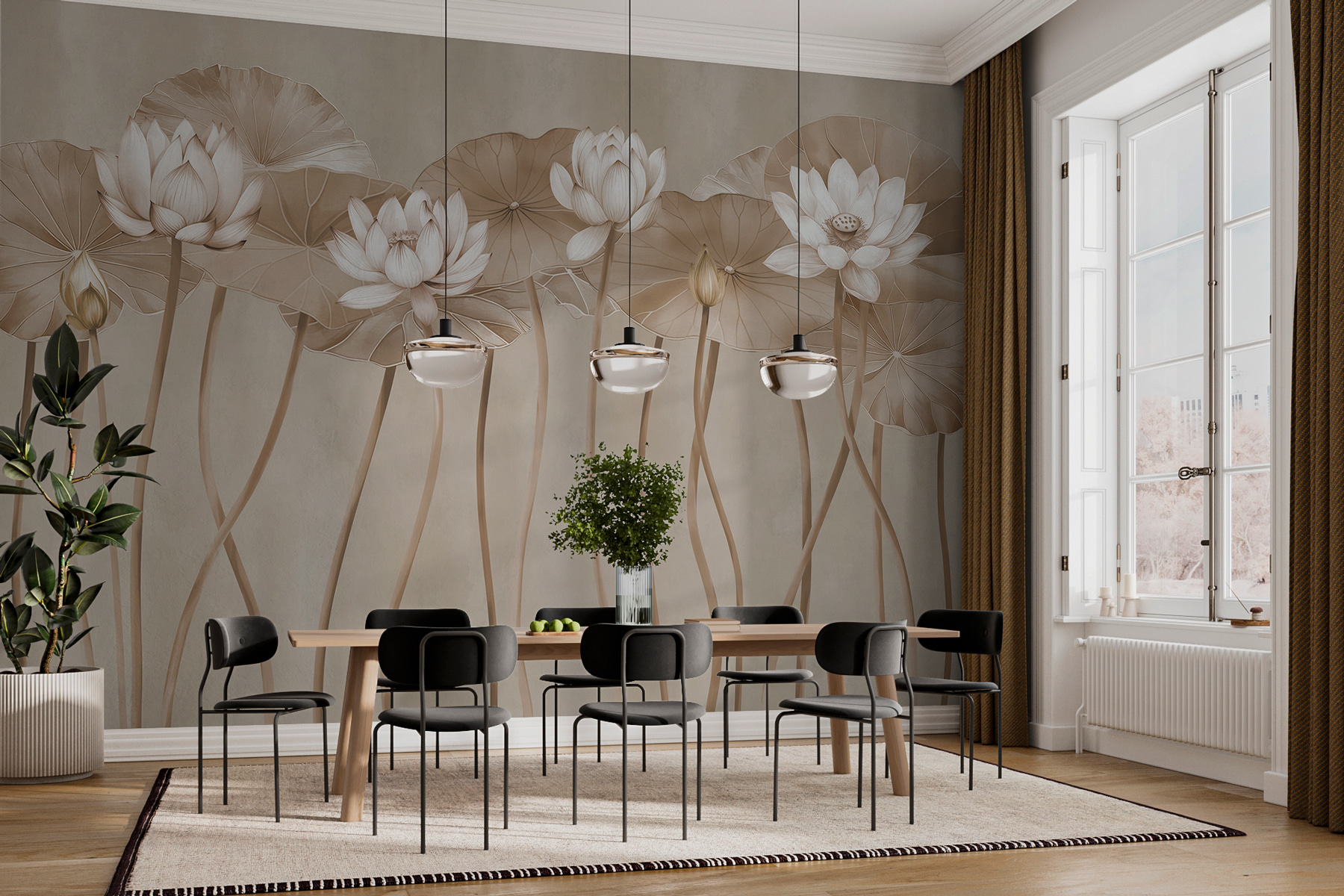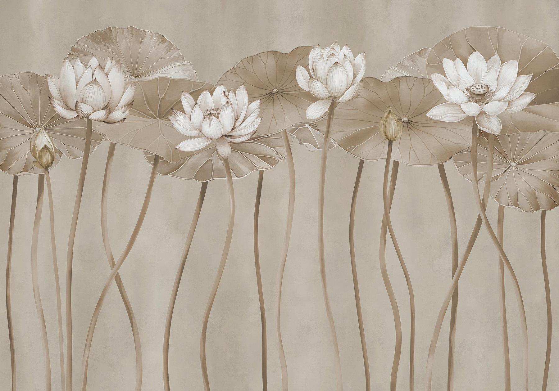 Verwandeln Sie eine schlichte Wand mit dem Wandbild Ethereal Lotus in monochromen Farbtönen in einen ruhigen Ort. Stellen Sie sich vor, Sie betreten einen ruhigen Garten, in dem sich zarte Lotusblumen sanft auf ihren hohen Stielen wiegen. Dieses Wandbild bringt einen Hauch von Natur ins Haus und schafft ein beruhigendes Ambiente, das flüstert: “Atme durch, du bist zu Hause.” Es eignet sich perfekt für jeden Raum, der ein wenig Charme braucht, und kann Gespräche anregen oder einfach eine friedliche Kulisse für den morgendlichen Kaffee bieten. Es ist, als hätte man eine kleine Oase genau dort, wo man sie braucht. Und wer liebt nicht einen guten Lotusblumen-Moment?