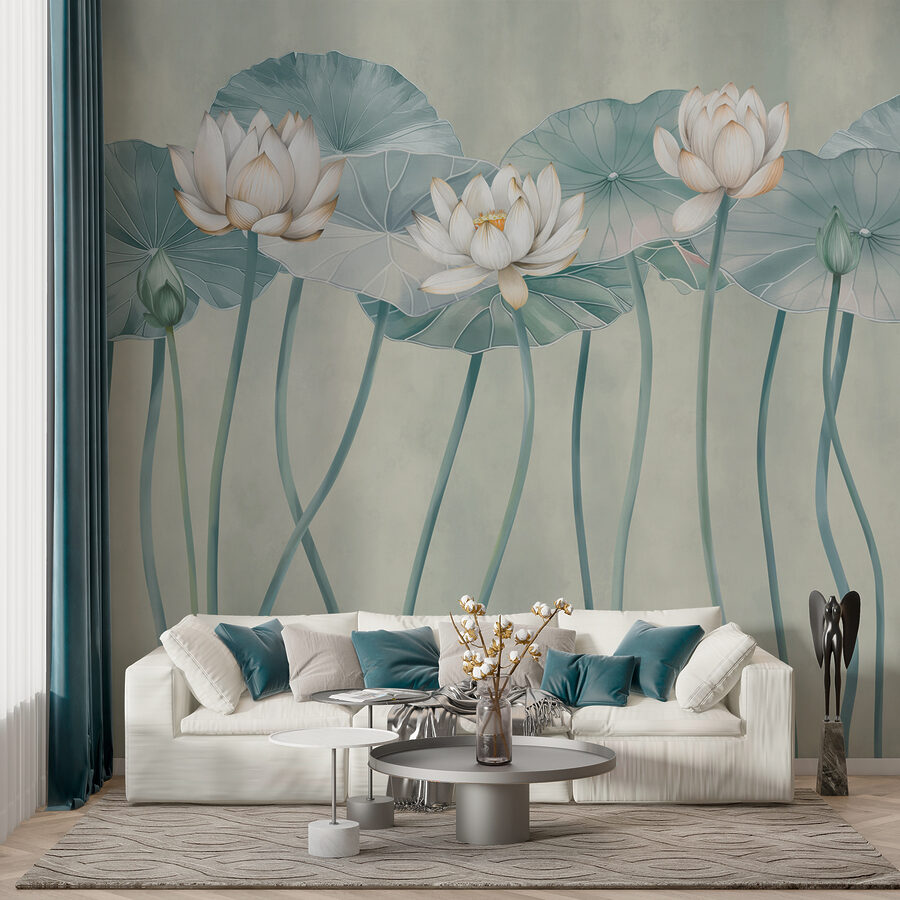 Verwandeln Sie Ihren Raum in einen ruhigen, naturverbundenen Zufluchtsort mit der “Fototapeten Group of White Flowers and Green Leaves”. Stellen Sie sich vor, Sie wachen mit dieser beruhigenden Szene auf – perfekt für alle, die heimlich von einem Zen-Garten in ihrem Wohnzimmer träumen. Das sanfte Wiegen der grünen Blätter und der reinweißen Blüten vermittelt eine erfrischende Atmosphäre, fast wie ein Hauch von frischer Luft an Ihrer Wand. Es ist wie Ihr persönliches Stückchen Ruhe im Freien – ohne dass Sie einen grünen Daumen brauchen. Es ist mühelos schick und lässt jeden Tag wie einen friedlichen Spaziergang in der Natur erscheinen.