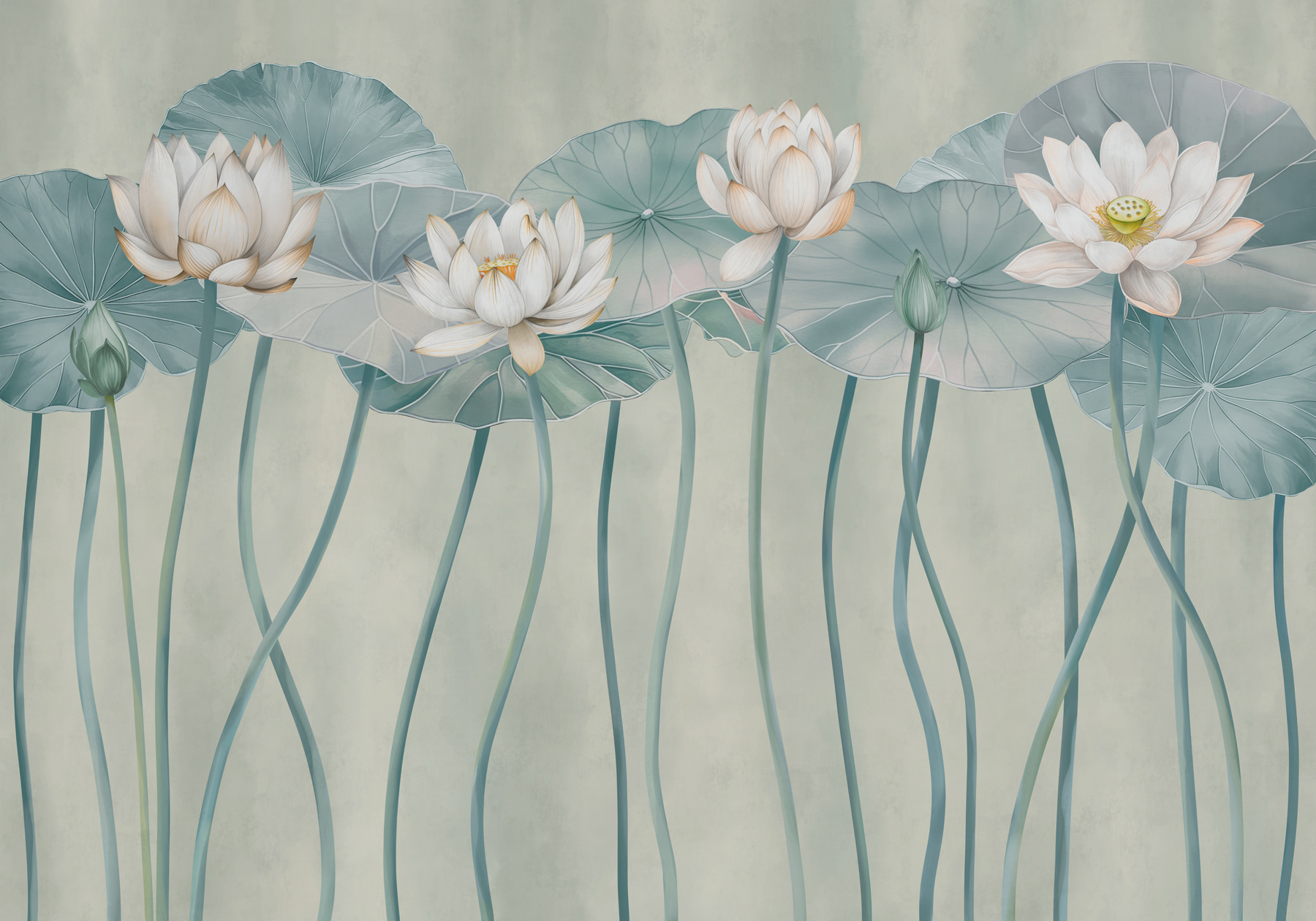 Verwandeln Sie Ihren Raum in einen ruhigen, naturverbundenen Zufluchtsort mit der “Fototapeten Group of White Flowers and Green Leaves”. Stellen Sie sich vor, Sie wachen mit dieser beruhigenden Szene auf – perfekt für alle, die heimlich von einem Zen-Garten in ihrem Wohnzimmer träumen. Das sanfte Wiegen der grünen Blätter und der reinweißen Blüten vermittelt eine erfrischende Atmosphäre, fast wie ein Hauch von frischer Luft an Ihrer Wand. Es ist wie Ihr persönliches Stückchen Ruhe im Freien – ohne dass Sie einen grünen Daumen brauchen. Es ist mühelos schick und lässt jeden Tag wie einen friedlichen Spaziergang in der Natur erscheinen.