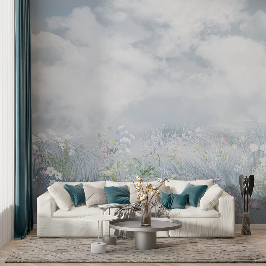 Stellen Sie sich vor, Sie wachen jeden Tag in einem Blumenfeld auf – ohne Ihr gemütliches Bett zu verlassen. Dieses Wandbild hat Wolken, die so flauschig sind, dass sie praktisch von der Wand abdriften, und Wildblumen, die vor Ihren Augen zu blühen scheinen. Es ist wie ein Aquarelltraum an Ihrer Wand. Perfekt für alle, die sich ein Nickerchen auf einer Wiese wünschen (ohne die Ameisen). Es hat diese magische Art, einen Raum zu öffnen, ihn ruhig und luftig wirken zu lassen. Eine perfekte Flucht. Mit einem Tee in der Hand vergisst man vielleicht, dass man zu Hause ist. Glücklich, nicht wahr?