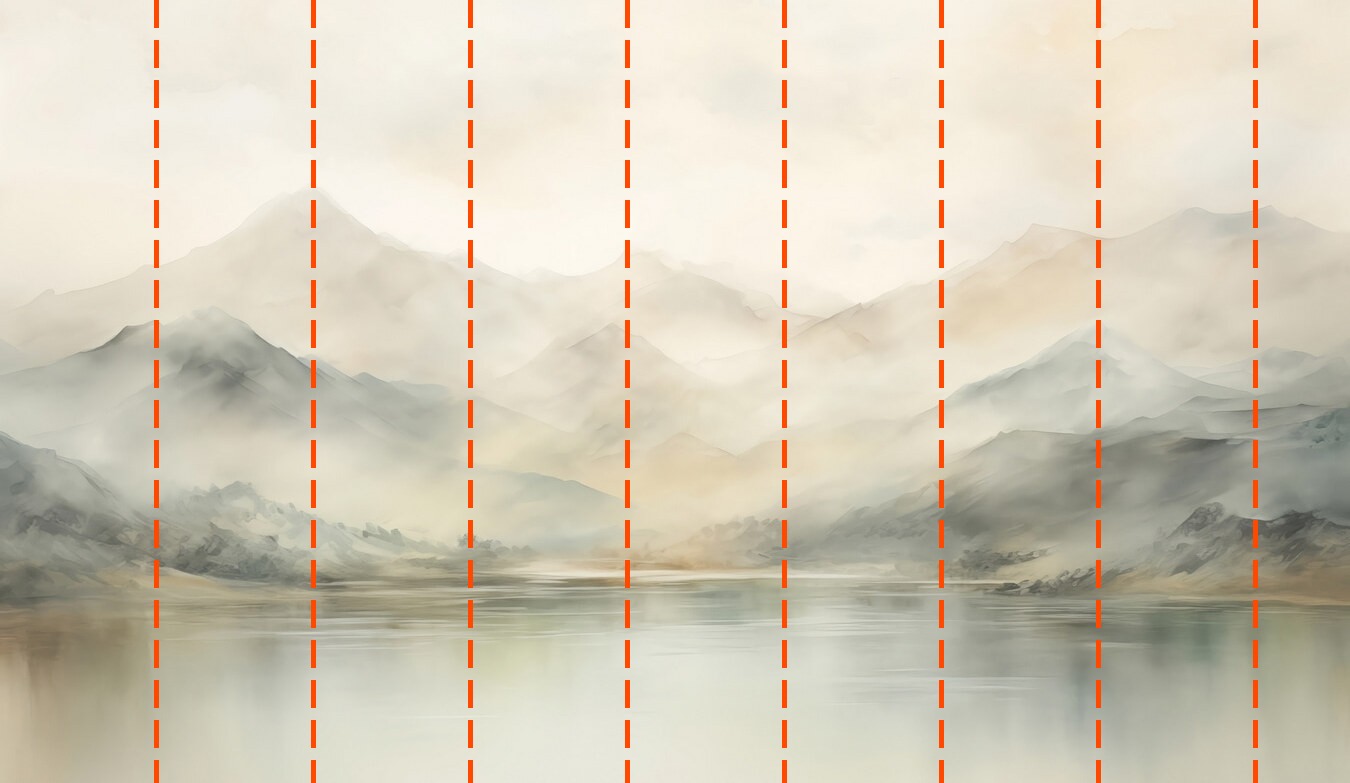 Ihre Tapete wird nach den von Ihnen während des Bestellvorgangs angegebenen Maßen angefertigt. Die Leinwand wird in praktische Abschnitte von jeweils bis zu 50 cm Breite unterteilt.