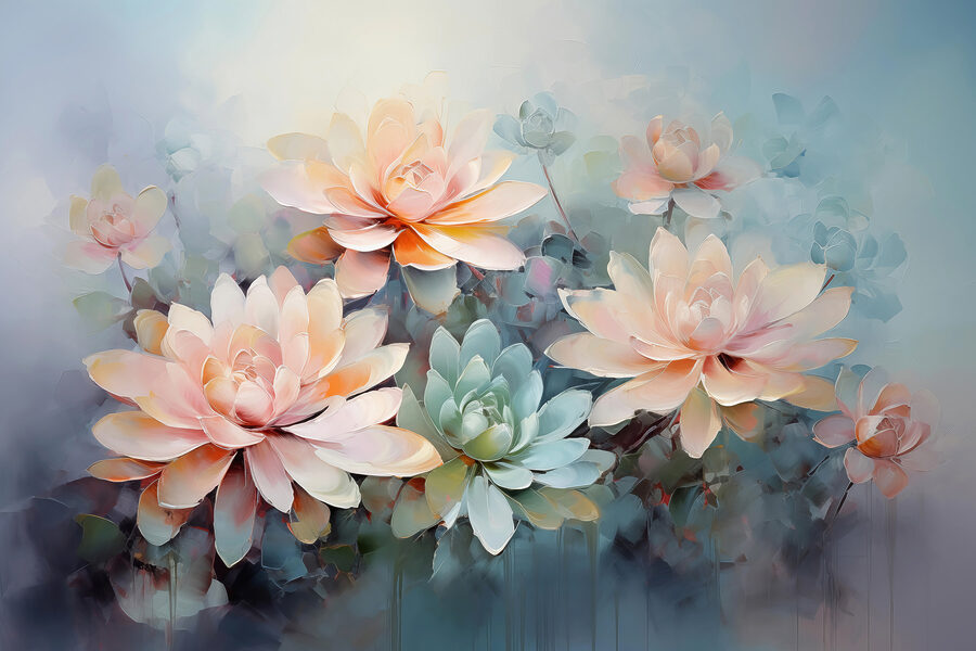 Stellen Sie sich vor, Sie wachen in einer verträumten blauen Welt auf, in der Blumen wie ein Aquarellfeuerwerk an Ihren Wänden explodieren. Auf dieser Fototapete tanzen herzerweichende Blütenblätter in Rosé- und Minttönen auf einer sanften Brise und flüstern praktisch süße Nichtigkeiten. Perfekt für gemütliche Ecken oder eine ruhige Leseecke – es ist wie eine Gartenparty für Ihre Augen. Vielleicht halten Ihre Freunde sogar mitten im Satz inne, um das Ganze auf sich wirken zu lassen. Ideal für alle, die sich einen Hauch von skurriler Eleganz in Verbindung mit dem Charme von Mutter Natur wünschen. Und vielleicht auch einen Hauch von Magie!