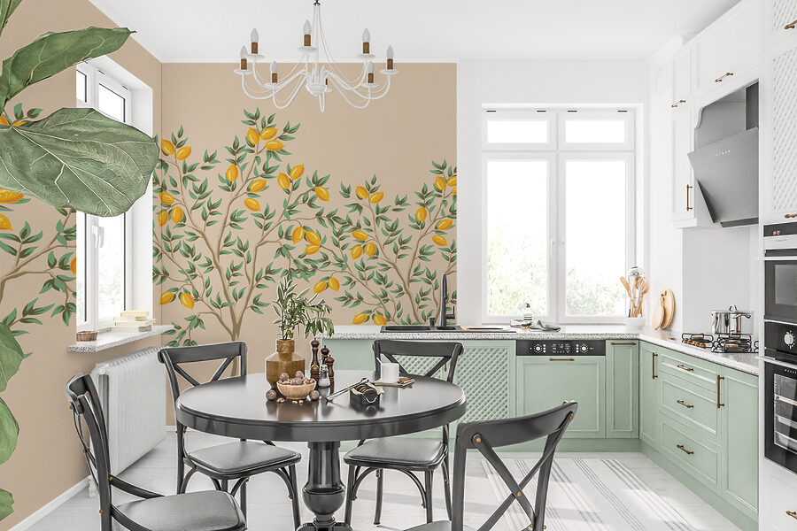 Verwandeln Sie eine schlichte Wand in eine lebendige Oase mit diesem entzückenden Wandbild, das einen lebendigen Baum mit vielen Früchten zeigt. Es ist, als hätten Sie ein Stück Natur direkt in Ihrem Wohnzimmer. Stellen Sie sich vor, wie Sie sich mit Freunden entspannen, Geschichten austauschen und Limonade schlürfen, während Sie diese sonnigen Früchte bewundern. All diese Grün- und Gelbtöne? Sie bringen einen Hauch von Freude und Entspannung. Außerdem ist es ein toller Gesprächsanlass! Wer würde nicht gerne über ein Wandbild plaudern, das einem fast das Gefühl gibt, unter einem echten Baum zu sitzen? Perfekt für eine Küche, einen Essbereich oder überall dort, wo ein Hauch von Natur angebracht ist.