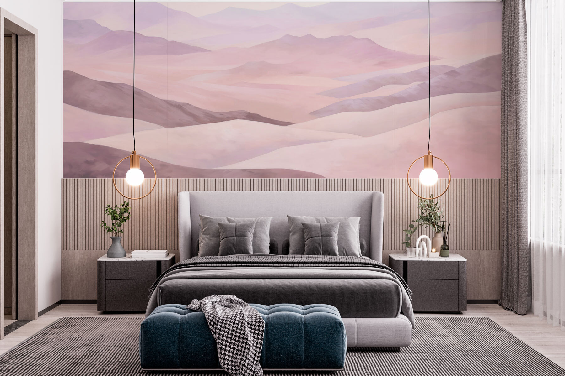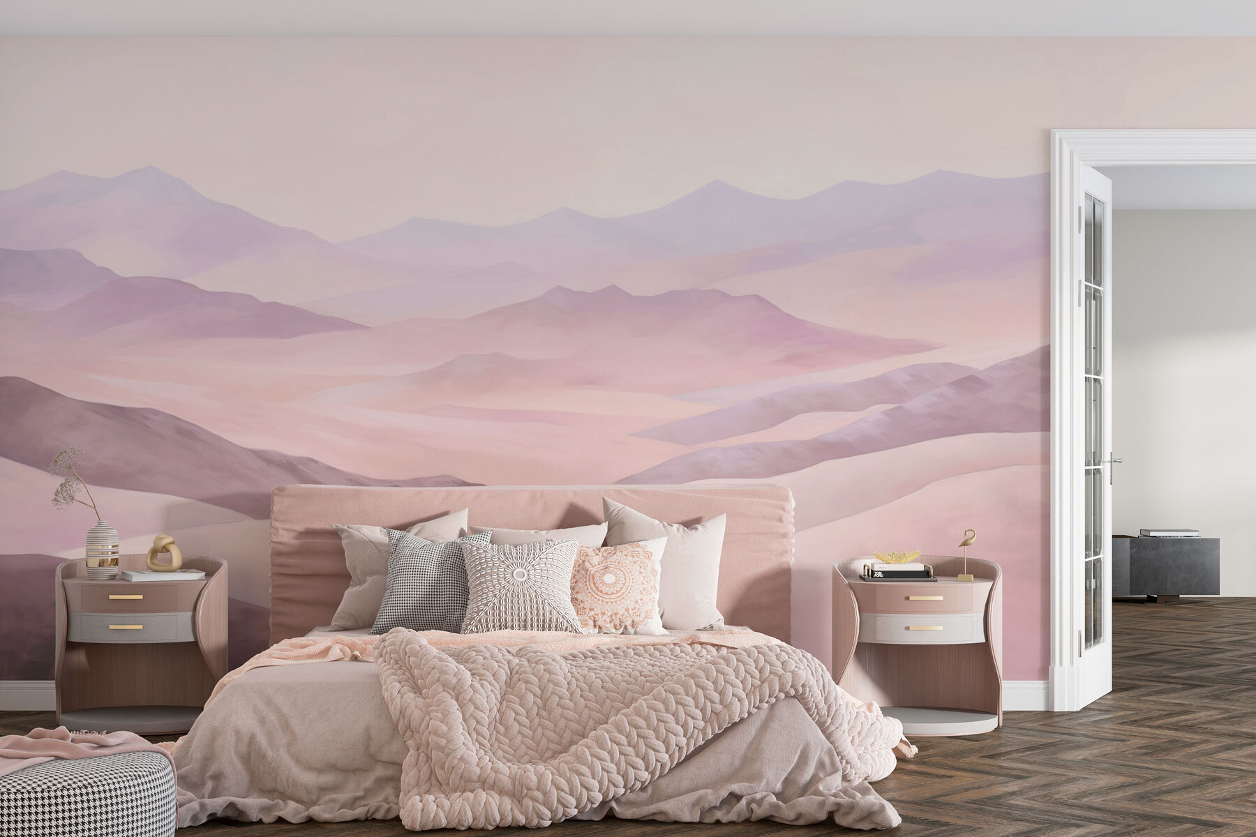 Stellen Sie sich vor, Sie machen es sich in Ihrem Lieblingssessel bequem und blicken auf ein atemberaubendes Aquarell, das sich wie eine sanfte, verträumte Landschaft über Ihre Wand legt. Es ist mehr als nur hübsche Hügel und stille Berge – es ist, als hätte die Natur beschlossen, für ein Gespräch ins Haus zu kommen. Perfekt für alle, die davon träumen, in friedliche, weite Räume zu entkommen, ohne ihr Wohnzimmer zu verlassen. Die sanften, gedämpften Farben verbreiten eine beruhigende Stimmung und hüllen Sie in eine gemütliche, malerische Umarmung. Ob Sie nun träumen oder ein Nickerchen machen, diese Fototapete hält Ihnen den Rücken frei!