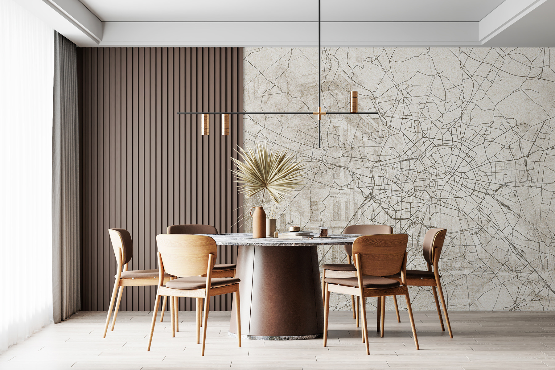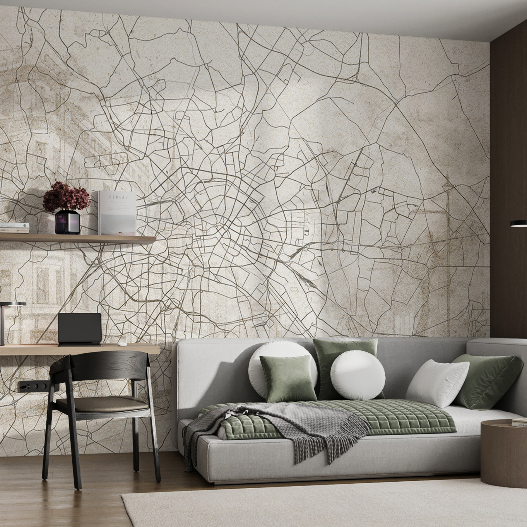 Stellen Sie sich vor, Sie betreten einen Raum und werden von einer verschlungenen Wandkarte begrüßt, die die Geheimnisse einer Stadt offenbart. Das ist wie ein Blick aus der Vogelperspektive, ohne die Couch zu verlassen. Diese Fototapete erzählt von verschlungenen Straßen und versteckten Wegen, als wären Sie ein moderner Entdecker – nur ohne Blasen. Die erdigen Töne gehen nahtlos ineinander über, und ein Hauch von Nostalgie mischt sich mit Abenteuer. Perfekt für Träumer und Wanderer, die sich gerne in Fernweh träumen. Sie wird mit Sicherheit für Gesprächsstoff sorgen – jeder liebt es, sich in einer guten Karte zu “verlieren”!