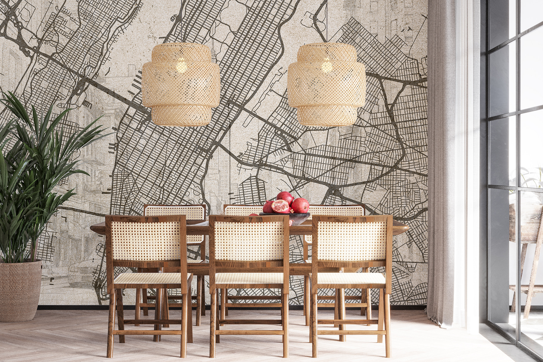 Verwandeln Sie eine Wand in einen fesselnden Gesprächsanlass mit der Fototapeten Map of a City. Es ist, als hätten Sie einen alten Stadtplan in Ihrem Wohnzimmer, der Geschichten von Abenteuern und Entdeckungen erzählt. Stellen Sie sich vor, Sie blicken auf diese verschlungenen Straßen und fragen sich, wohin Ihre nächste Reise gehen könnte – oder schwelgen in Erinnerungen an vergangene Eskapaden. Diese Fototapete dekoriert nicht nur, sie lädt auch zu Tagträumen und gemütlichen Gesprächen bei einem Kaffee ein. Mit seinen dezenten, erdigen Tönen verleiht es einen Hauch von Raffinesse, ohne nach Aufmerksamkeit zu schreien. Perfekt für alle, für die jede Wand eine leere Leinwand ist, die nur darauf wartet, mit einem Spritzer Persönlichkeit versehen zu werden. Warum nicht das Fernweh wecken? Machen Sie sich bereit, sich jedes Mal inspirieren zu lassen, wenn Sie vorbeigehen!
