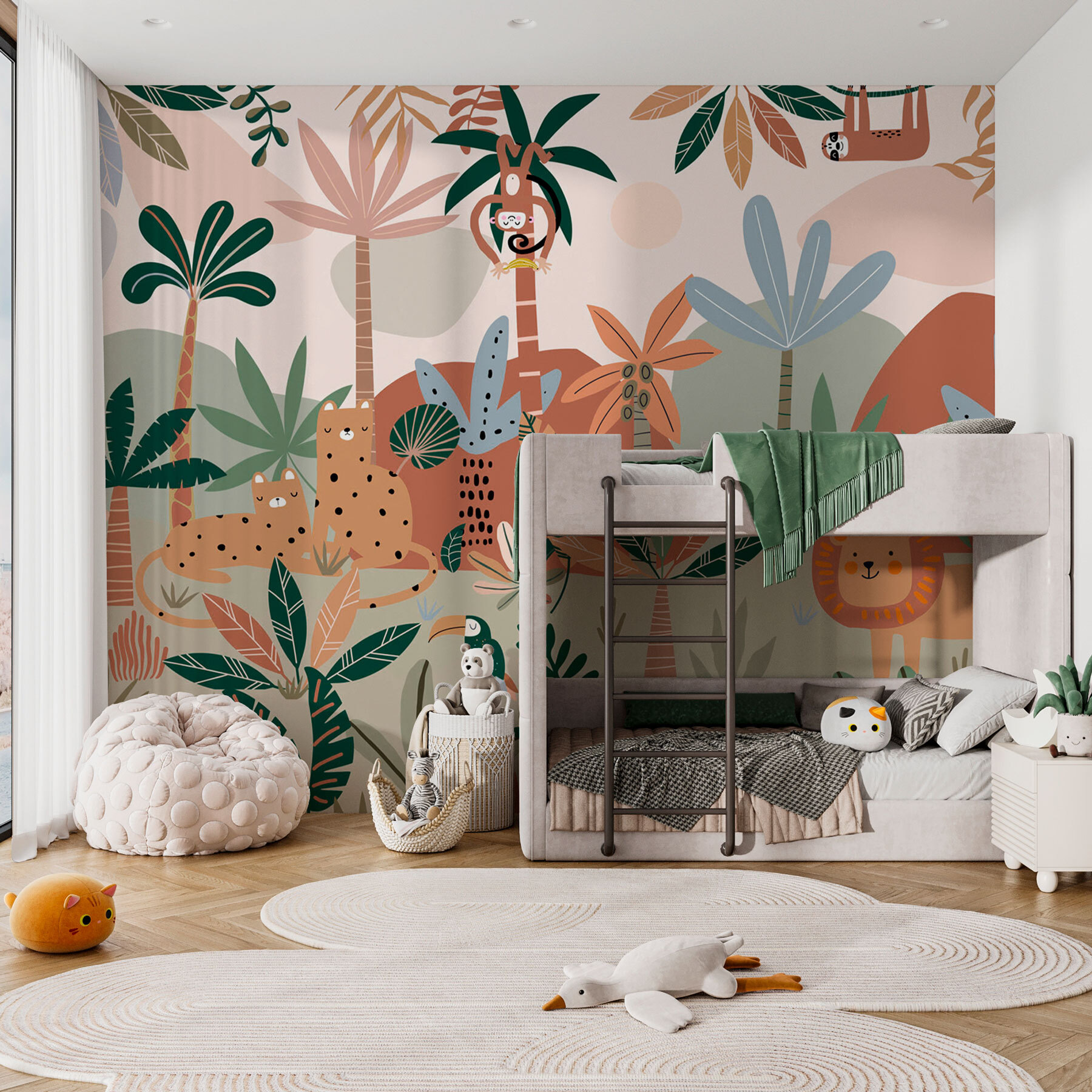 Betreten Sie den Dschungel, ohne Ihr Haus zu verlassen! Diese verspielte Fototapete ist wie ein kleines Safari-Abenteuer in Ihrem eigenen Wohnzimmer. Stellen Sie sich fröhliche Löwen, liebenswerte Faultiere und freche Affen vor, die durch ein dichtes Blätterdach aus leuchtenden Grün- und Erdtönen lugen. Es hat diese lustige, schrullige Ausstrahlung, die Sie zum Lächeln bringt – so als ob Sie Ihren lang vermissten Lieblingspullover gefunden hätten. Ideal für Kinderzimmer oder, seien wir ehrlich, für jeden, der ein wenig Laune liebt. Ein Hauch von Wildheit, der den Alltag auflockert.