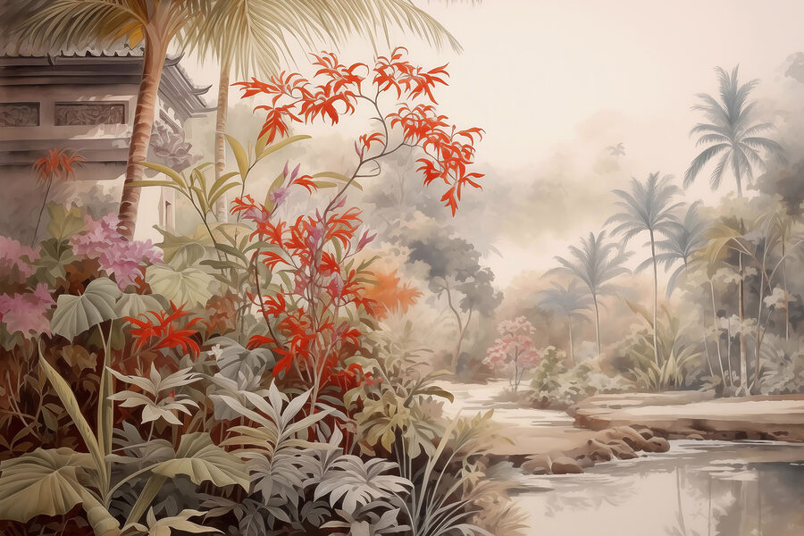 Stellen Sie sich vor, Sie wachen jeden Tag mit der Ruhe eines Flusses auf, der sich durch üppige Bäume schlängelt. Dieses Wandgemälde mit einem Fluss und Bäumen verwandelt jeden Raum in eine heitere Oase. Mit seinen leuchtenden Farben und der verträumten Stimmung ist es, als hätte man ein Stück Paradies direkt an der Wand. Perfekt für jene Tage, an denen man sich nach einem tropischen Urlaub sehnt, aber das Budget es nicht zulässt. Stellen Sie sich vor, Sie genießen Ihren Morgenkaffee und lassen sich vom sanften Fluss treiben – ein Bildschirmschoner der Natur, der keine Batterien benötigt.