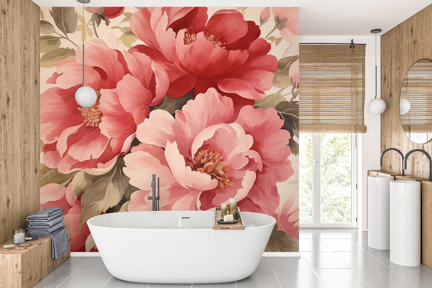Fototapeten Blühende Pfingstrosen unter sanftem Licht