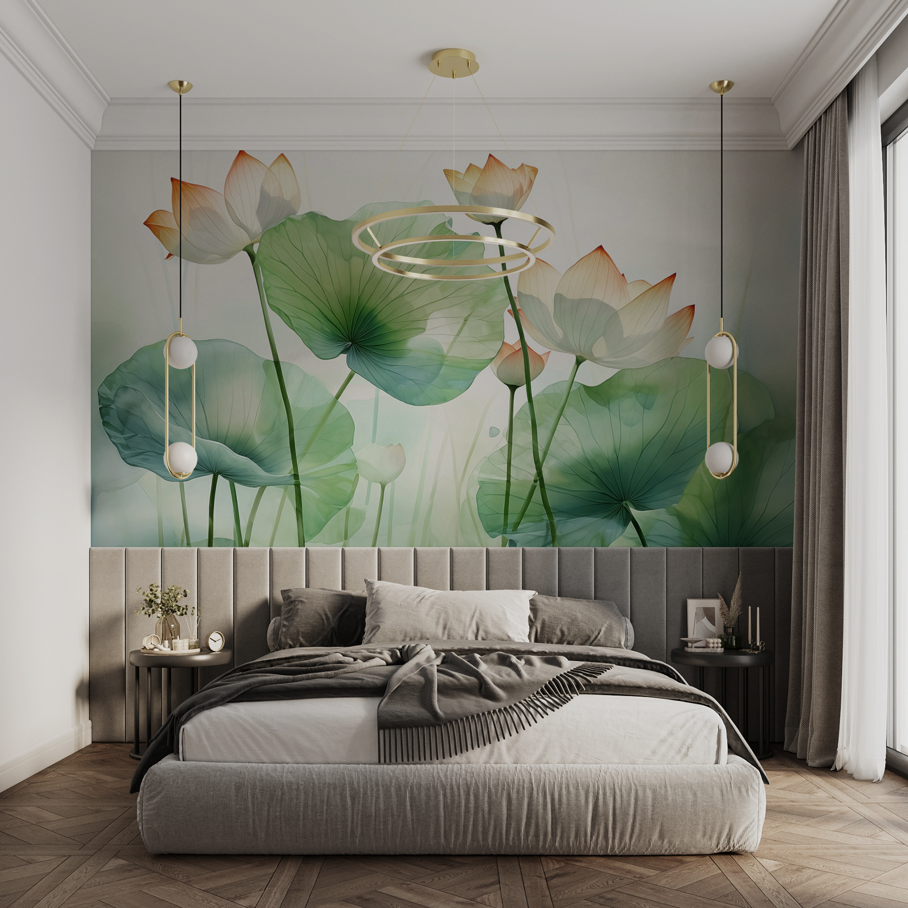 Stellen Sie sich einen Sonntagmorgen mit einer frischen Tasse Kaffee vor, und Sie werden von dieser atemberaubenden Fototapete begrüßt – “Lotusblüten in ruhigen Gewässern”. Es ist wie ein kleiner Seeurlaub für Ihre Wände! Sanfte Grün- und Rosatöne spielen miteinander und bringen einen Hauch von Ruhe in jeden Raum. Der Lotus, der so anmutig ist, strahlt jedes Mal Ruhe aus, wenn Sie an ihm vorbeigehen. Perfekt, wenn das Wohnzimmer einen sanften Schubs in Richtung Zen braucht. Es ist nicht nur Dekoration, es ist eine Stimmung, ein Gefühl. Wer hätte gedacht, dass die Natur Sie umarmen kann, nur weil sie an einer Wand hängt?