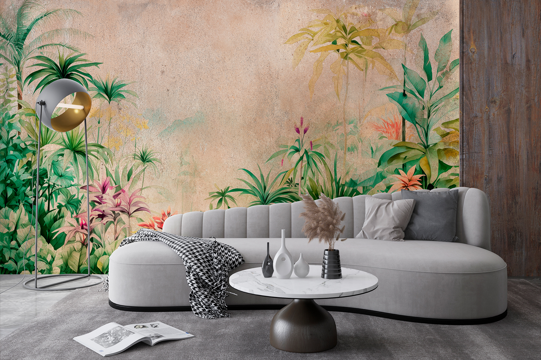 Stellen Sie sich vor: Sie sitzen in Ihrem Wohnzimmer und trinken eine Tasse Tee, und plötzlich befinden Sie sich in einem üppigen Dschungel! Dieses “Wandgemälde mit Pflanzen und Blumen” ist so, als ob Sie ein Portal zu einem ruhigen, grünen Paradies direkt in Ihrem Zuhause öffnen würden. Es ist nicht nur ein Wandbild – es ist ein Erlebnis. Die herrlichen tropischen Farbtöne und das sanfte Wiegen der Palmenblätter lassen Sie vielleicht ein oder zwei Mal tief durchatmen. Perfekt für alle, die von der Natur ohne Ungeziefer träumen. Es ist, als würde Ihre Wand ihr eigenes kleines Regenwald-Refugium eröffnen. Was für eine fantastische Flucht!