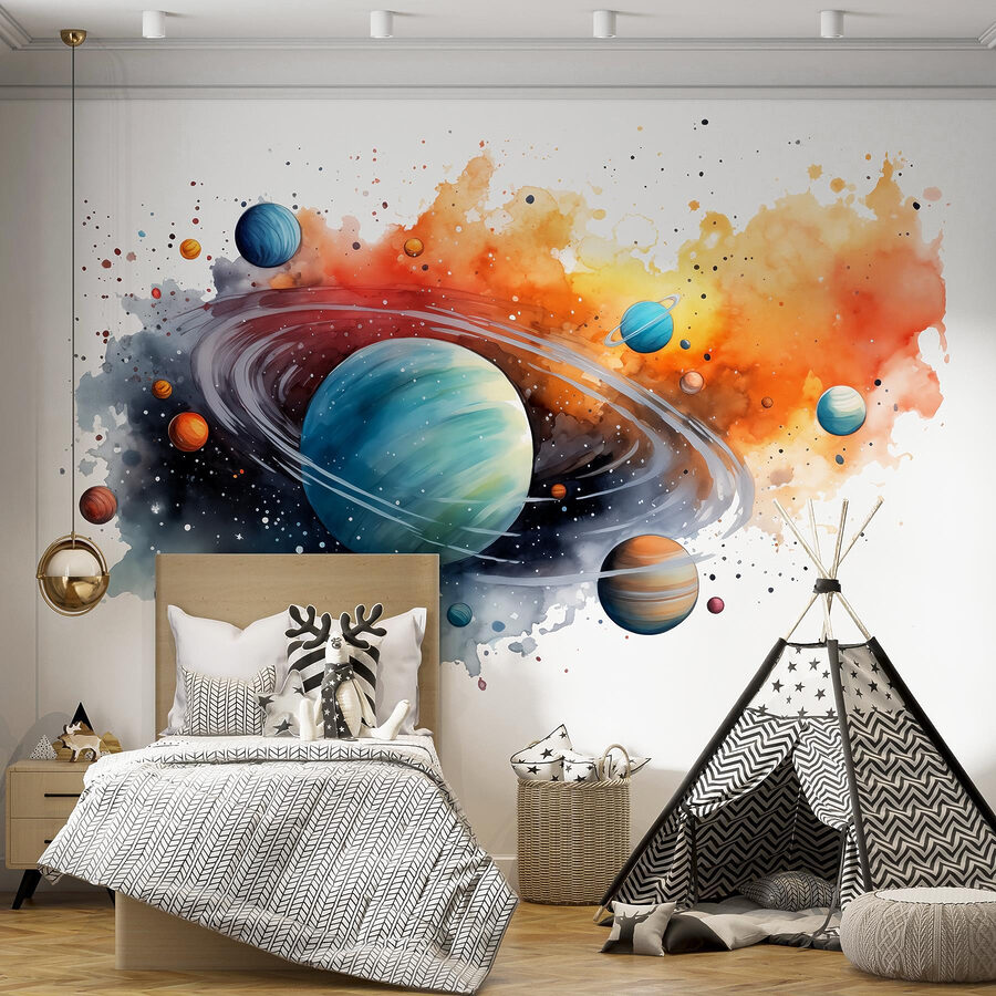 Haben Sie jemals davon geträumt, das Universum direkt in Ihrem Wohnzimmer zu haben? Dieses Aquarell von Planeten und Sternen vermittelt das Gefühl, dass jeder Planet nur einen Schritt entfernt ist. Perfekt für Weltraumfans – oder für jeden, der schon einmal in den Nachthimmel geschaut und sich gefragt hat, ob Aliens besseren Kaffee trinken. Die sanften Aquarellfarben sorgen für eine verträumte Stimmung, während die Sterne frech funkeln. Stellen Sie sich vor, Sie machen es sich mit einem guten Buch gemütlich und haben das Gefühl, inmitten der Galaxien zu sein. Es ist nicht nur eine Wand – es ist ein Abenteuer. Sind Sie bereit, Ihr eigenes zu beginnen?