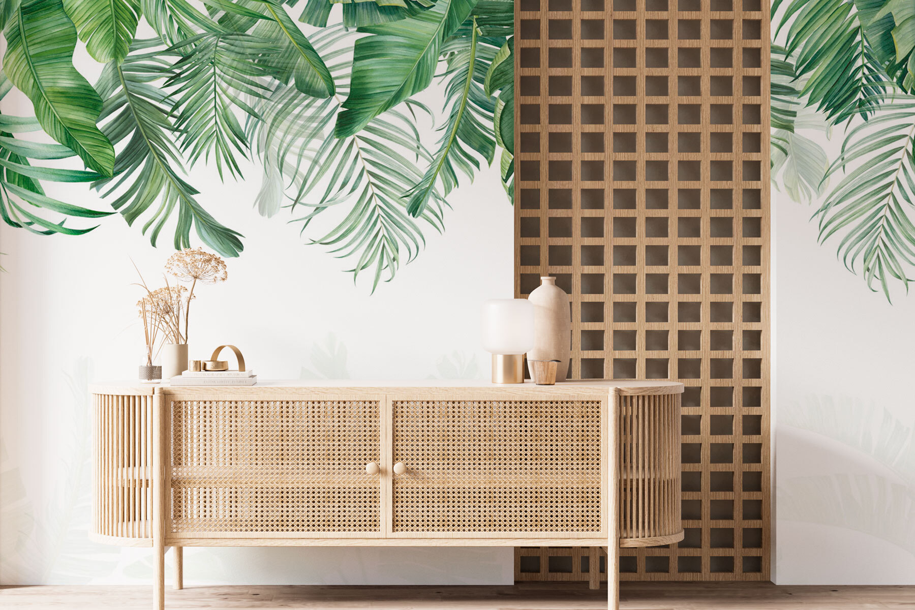 Verwandeln Sie Ihren Raum in ein tropisches Paradies mit der Fototapete “Row of Green Leaves”. Stellen Sie sich vor, dass Sie jedes Mal, wenn Sie Ihr Zimmer betreten, in einen sonnenbeschienenen Dschungel eintreten – was für ein Genuss! Das üppige Grün sorgt für eine erfrischende Atmosphäre, die den Raum lebendig und einladend erscheinen lässt. Perfekt für gemütliche Abende mit Freunden oder einfach nur, um sich bei einem Kaffee in seiner Schönheit zu sonnen.