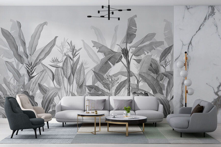 Der einfarbige Dschungel wartet darauf, erkundet zu werden – klingt nach einem Abenteuer, oder? Stellen Sie sich vor, Sie wachen jeden Tag in einem heiteren Dschungel auf, direkt in Ihrem Zimmer! Diese Fototapete ist nicht nur Dekoration, sie ist eine Flucht. Mit seinen schicken Blättern in Graustufen verleiht es Ihrem Raum eine raffinierte, aber beruhigende Atmosphäre. Perfekt für alle, die die Natur lieben, aber nicht den Lärm. Ihre Freunde werden neugierig sein, vielleicht sogar ein bisschen neidisch. Stellen Sie sich vor, wie Sie morgens in aller Ruhe Ihren Kaffee schlürfen und die entspannende Atmosphäre des Dschungels in sich aufnehmen. Ein Stück, das Eleganz mit einem Hauch von Wildheit verströmt.