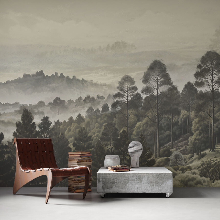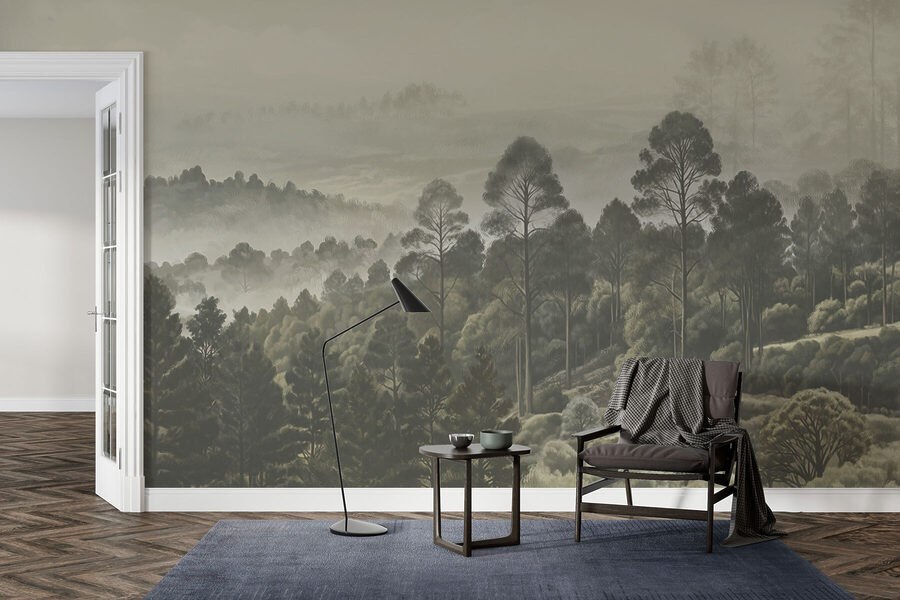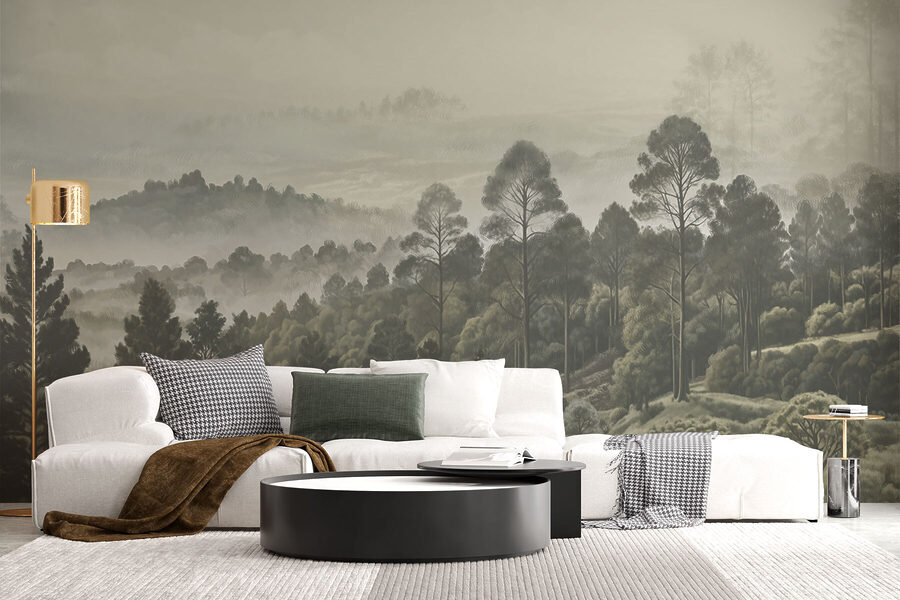 Stellen Sie sich vor, Sie trinken einen Kaffee in Ihrem Wohnzimmer, aber anstatt auf eine schlichte Wand zu starren, sehen Sie dieses verträumte Wandbild mit Bäumen und Nebel. Es ist wie ein gemütlicher, nebliger Morgenspaziergang durch den Wald – nur ohne die Käfer natürlich. Die gedämpften Grün- und Grautöne fühlen sich wie eine sanfte Umarmung an und schaffen die perfekte Chill-out-Zone. Man könnte sogar vergessen, dass man sich in einem Raum befindet. Es ist nicht nur eine Wandmalerei, es ist eine Stimmung. Eine subtile Flucht, ohne jemals das Haus zu verlassen. Wundern Sie sich nur nicht, wenn Ihre Gäste etwas länger bleiben!