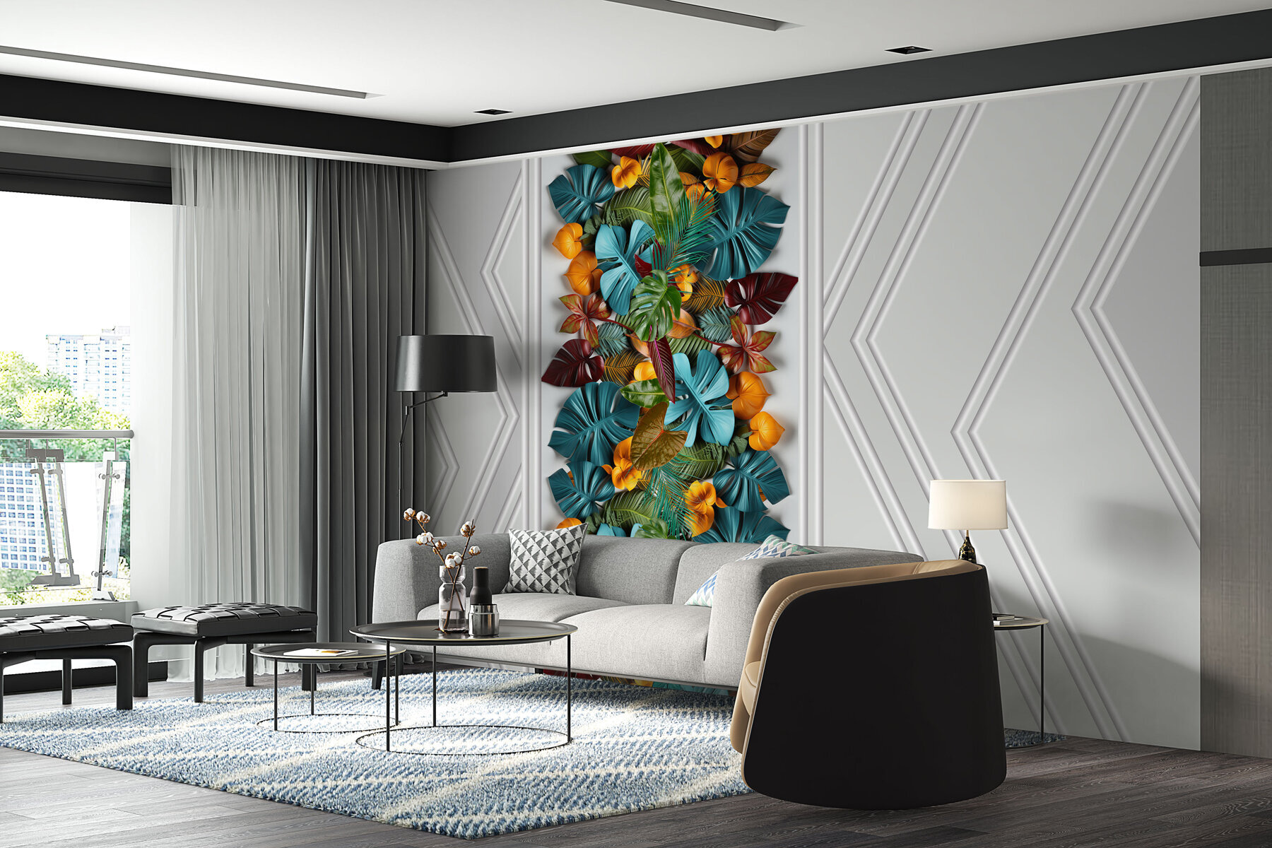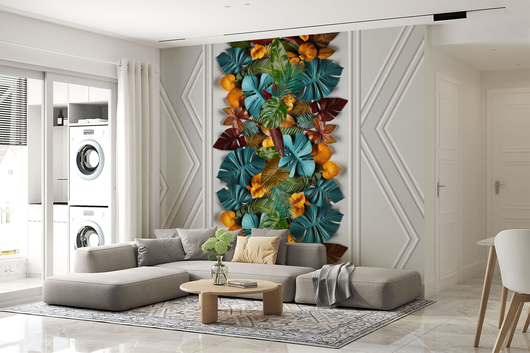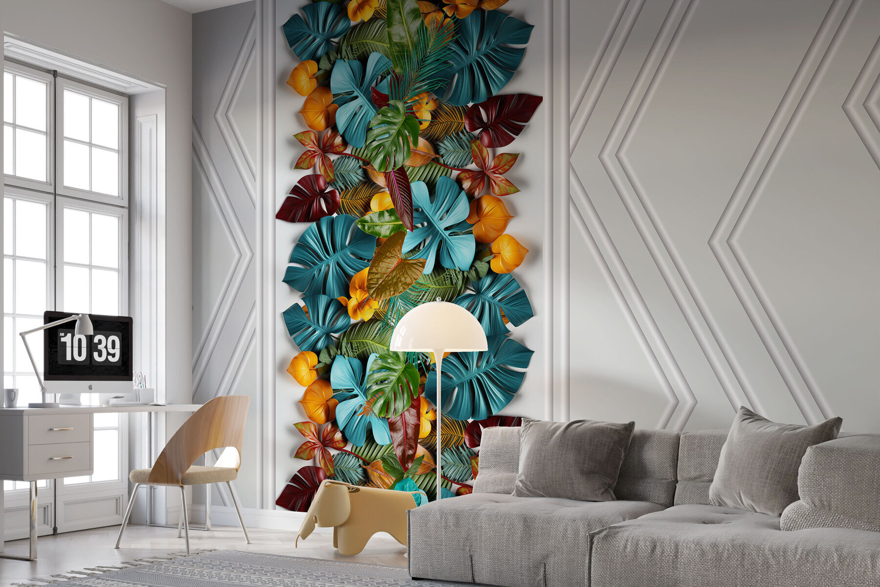 Verwandeln Sie jeden Raum mit dieser bezaubernden Fototapete, die eine weiße Tür inmitten eines bunten Blättermeeres zeigt. Es ist, als ob Sie sich einen sonnigen, tropischen Urlaub in Ihren Raum holen würden! Stellen Sie sich vor, Sie wachen jeden Morgen in einem pulsierenden Dschungel auf – die lebendigen Grüntöne und das kräftige Orange wecken Freude und vielleicht sogar ein paar Tagträume. Perfekt für ein Wohnzimmer oder ein Heimbüro, schafft es eine spielerische Kulisse, die sowohl entspannend als auch anregend ist. Stellen Sie sich vor, Sie laden Freunde ein und hören, wie sie von Ihrer einzigartigen Einrichtung schwärmen. Wer würde sich nicht gerne in so einer üppigen Atmosphäre sonnen? Es geht um das Gefühl von Urlaub, ohne das Haus zu verlassen!