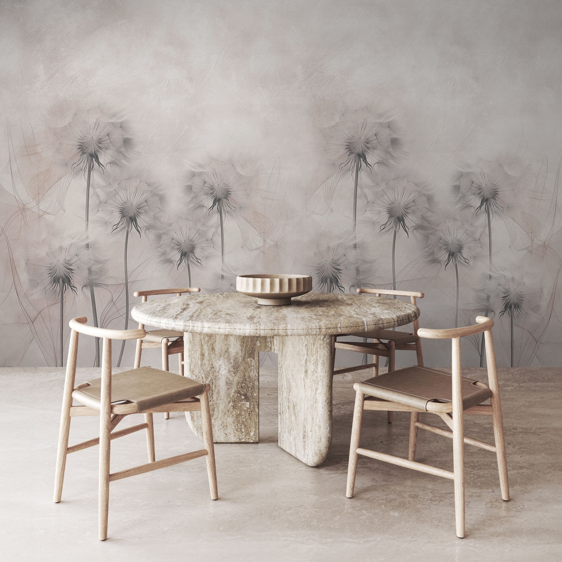 Verwandeln Sie Ihren Raum mit dieser entzückenden Fototapete, die eine skurrile Gruppe von Pusteblumen auf einem weichen weißen Hintergrund zeigt. Es ist, als ob man sich einen Hauch frischer Luft ins Haus holt – ohne die lästigen Pollen! Stellen Sie sich vor, Sie trinken einen Kaffee in einem sonnendurchfluteten Raum, in dem sich diese zarten Blüten sanft an der Wand wiegen. Perfekt für die Tage, an denen die Natur ein bisschen zu weit weg ist. Diese Fototapete verleiht Ihren Wänden einen Hauch von Eleganz und einen Spritzer Kreativität und lässt sie lebendig wirken. Ob in einer gemütlichen Ecke oder einem lebhaften Wohnzimmer, es ist genau die Art von Dekoration, die Gespräche anregt und den Tag erhellt. Wer würde beim Anblick von tanzenden Pusteblumen nicht lächeln?