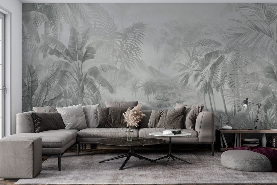 Verwandeln Sie Ihre Wände in einen ruhigen Zufluchtsort mit diesem atemberaubenden Wandbild in Graustufen, das einen tropischen Wald zeigt. Stellen Sie sich vor, Sie nippen an Ihrem Morgenkaffee, während Sie das üppige Blattwerk betrachten, das die Geheimnisse des Dschungels zu flüstern scheint. Die sanften, gedämpften Töne sorgen für eine ruhige Stimmung – perfekt für alle, die ihre Einrichtung mit einem Hauch von Geheimnis bevorzugen. Stellen Sie sich diese Schönheit hinter einer gemütlichen Leseecke oder als Hintergrund für Ihren nächsten Zoom-Anruf vor, und Sie werden sich wie in einem tropischen Urlaub fühlen, auch wenn Sie nur zu Hause sind. Es ist, als würde man sich ein Stück Paradies ins Haus holen, ohne einen Sonnenbrand zu bekommen. Ein echter Gewinn für beide Seiten!