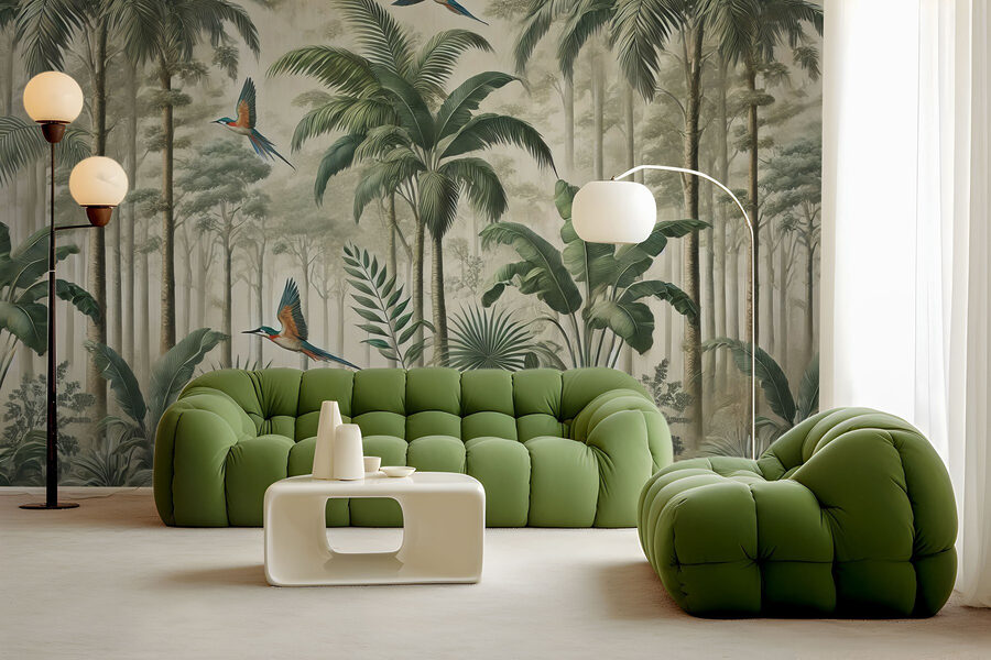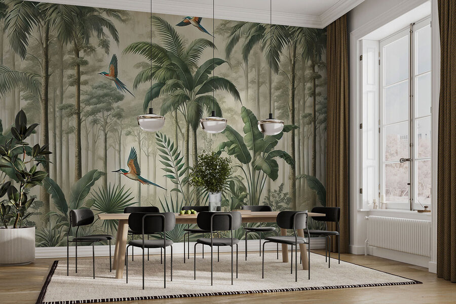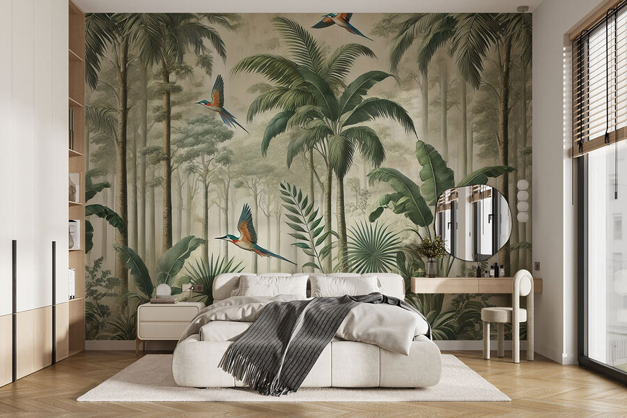 Verwandeln Sie jeden Raum in einen ruhigen Zufluchtsort mit dieser atemberaubenden Fototapete mit Vögeln, die über einem üppigen Wald schweben. Stellen Sie sich vor, Sie betreten den Raum und fühlen sich wie in einem heiteren Dschungel, in dem leuchtende Farben leuchten und die Luft nach tropischem Laub duftet. Der verspielte Flug der Vögel verleiht dem Ganzen einen Hauch von Laune und erhellt selbst den trübsten Raum. Dieses Wandbild eignet sich perfekt für eine gemütliche Leseecke oder einen friedlichen Rückzugsort, denn es flüstert leise von Abenteuer und Ruhe. Ideal für alle, die die Natur lieben oder einfach nur dem Alltag entfliehen wollen – denn wer möchte sich nicht wie auf einem tropischen Ausflug fühlen? Also, lassen Sie Ihre Wände singen und beleben Sie Ihren Raum!