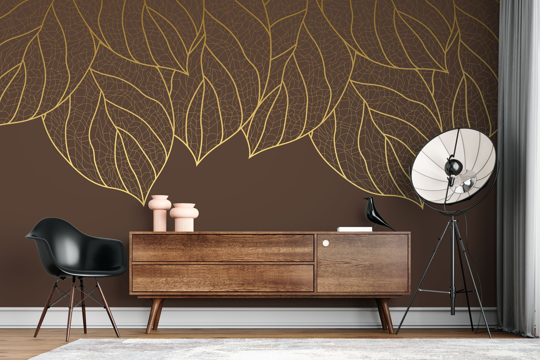 Wenn Sie einen Raum mit dieser Fototapete umgestalten, ist das, als ob Sie einen ruhigen Wald in Ihr Zuhause einladen. Stellen Sie sich vor, Sie wachen auf und sehen eine sanfte Kaskade von Blättern auf einem warmen braunen Hintergrund – das ist doch sicher besser als eine leere Wand, oder? Dieses Design sorgt für einen Hauch von Natur, der gemütlich und doch modern wirkt. Stellen Sie sich vor, wie schön es wäre, daneben einen Kaffee zu trinken und sich ein wenig geerdet zu fühlen, während die Umrisse der Blätter im Morgenlicht tanzen. Sie eignet sich perfekt für Wohn- und Schlafräume und schafft eine friedliche Atmosphäre, die Ruhe und Behaglichkeit ausstrahlt. Wer hätte gedacht, dass eine Wand so viel gute Energie bringen kann?
