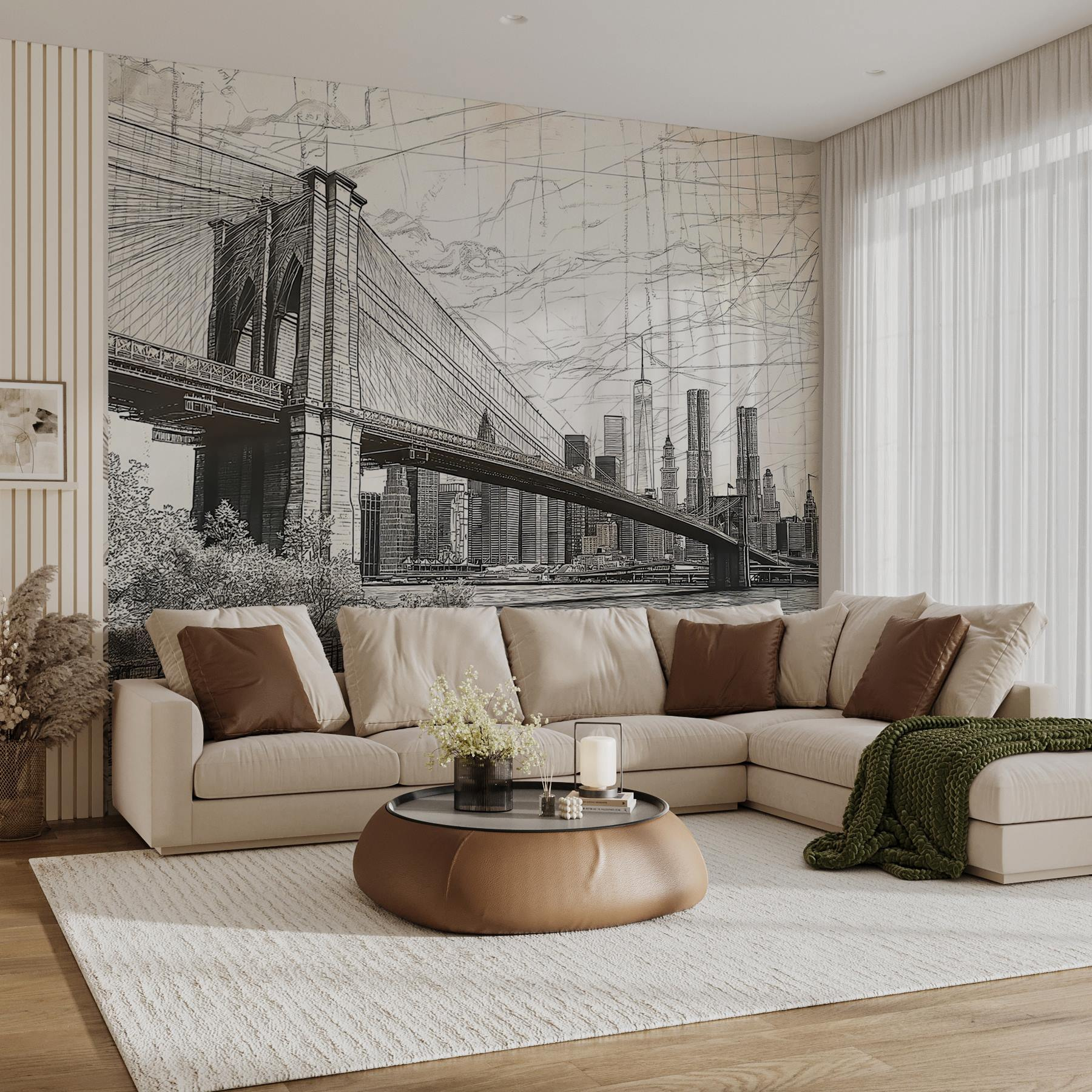 Verwandeln Sie Ihren Raum mit dieser fesselnden Fototapete, die eine Brücke und eine Stadtlandschaft zeigt und eine Dosis urbanen Charme direkt an Ihre Wände bringt. Stellen Sie sich vor, Sie betrachten es, während Sie Ihren Morgenkaffee schlürfen – ein Hauch von Abenteuer liegt in der Luft, genau wie bei einem Sonntagsspaziergang am Fluss. Die verschlungenen Linien fangen das hektische Treiben der Stadt ein und geben ihr dennoch ein Gefühl der Gelassenheit. Es eignet sich perfekt, um Gespräche anzuregen oder einfach nur von den Orten zu träumen, an denen Sie schon waren oder noch hinwollen. Lassen Sie dieses Wandbild als Hintergrund für Ihre täglichen Momente dienen – wer weiß, vielleicht inspiriert es Sie zu Ihrem nächsten großen Abenteuer!