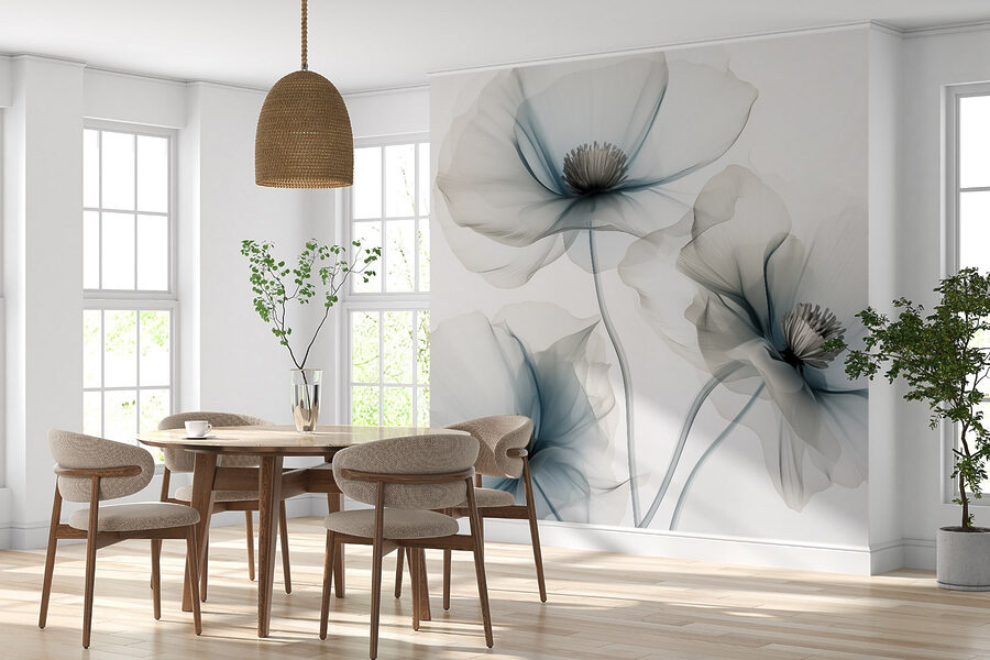 Verwandeln Sie jeden Raum in einen ruhigen Rückzugsort mit diesem bezaubernden Wandbild mit zarten Blumen in sanften hellblauen Farbtönen. Es strahlt Eleganz und Ruhe aus und lädt Sie zu einem friedlichen Rückzugsort ein. Stellen Sie sich vor, wie Sie an Ihrem Kaffee nippen und sich im Schein des Morgenlichts sonnen, während diese wunderschönen Blüten auf Ihren Wänden tanzen. Sie fangen die Essenz der Natur auf so sanfte Weise ein – perfekt für die Tage, an denen sich die Welt ein bisschen zu hektisch anfühlt. Außerdem ist es eine schicke Art, einen Farbakzent zu setzen, ohne den Raum zu überladen. Sie brauchen keinen Garten! Genießen Sie die Schönheit und lassen Sie Ihre Wände eine Geschichte erzählen.