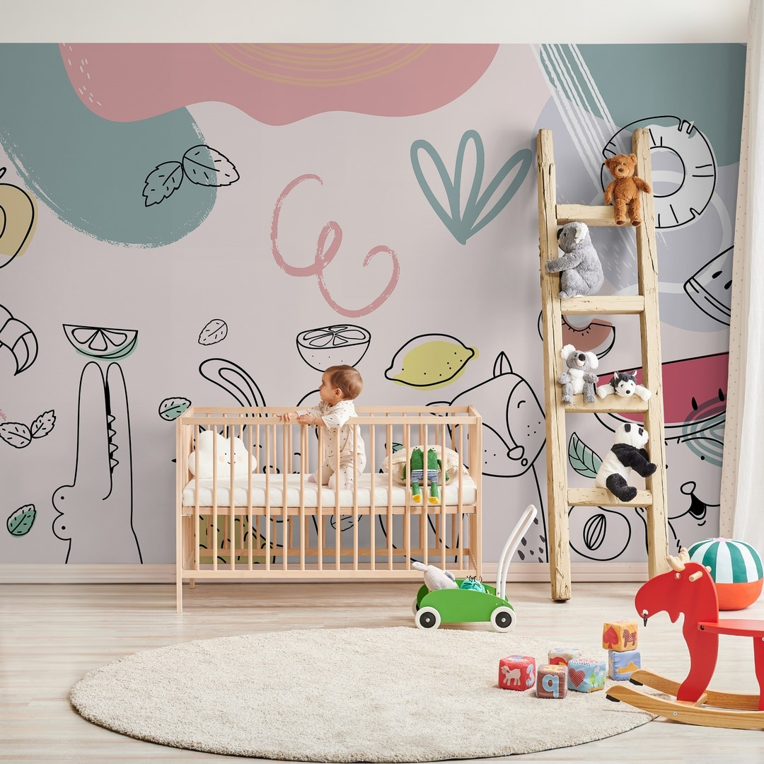 Verschönern Sie jeden Raum mit diesem entzückenden Wandbild, auf dem Cartoon-Tiere zu sehen sind, die fröhlich ihre Lieblingsfrüchte halten. Stellen Sie sich einen frechen Flamingo vor, der ein Stück Wassermelone genießt, oder ein Häschen, das eine ganze Ananas in der Hand hält – es ist wie eine Obstparty direkt an Ihrer Wand! Dieses skurrile Design sorgt für eine verspielte Atmosphäre und eignet sich perfekt für ein Kinderzimmer oder eine gemütliche Sitzecke. Stellen Sie sich vor, Sie kommen herein und fühlen sich sofort leichter, als wären Sie an einem sonnigen Tag am Strand. Ein Hauch von Spaß und Farbe, der Lust auf Obstsalat machen könnte. Wer würde nicht gerne inmitten dieser fruchtigen Freunde leben?