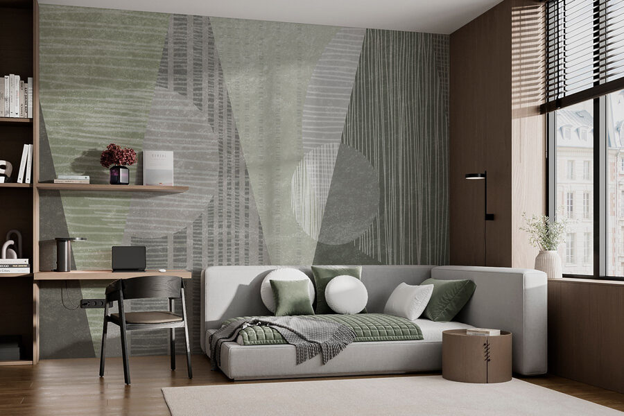 Verwandeln Sie Ihren Raum mit dieser atemberaubenden Fototapete, die abstrakte Formen in gedämpften Tönen zeigt. Stellen Sie sich vor: ein gemütlicher Nachmittag, sanftes Licht, das durch das Fenster fällt, und dieses Wandbild, das die Blicke auf sich zieht. Die sanften Grün- und Grautöne schaffen eine beruhigende Atmosphäre, perfekt, um Tee zu trinken oder sich in ein gutes Buch zu vertiefen. Es ist modern und doch mühelos – wie die Deko-Version Ihres bequemen Lieblingspullovers. Stellen Sie sich vor, Ihre Freunde kommen herein und sagen: “Wow, wo hast du das gefunden?” Es regt zu Gesprächen an und verleiht jedem Raum einen Hauch von künstlerischem Flair. Perfekt für das Wohnzimmer, das Schlafzimmer oder sogar ein ruhiges Büro!