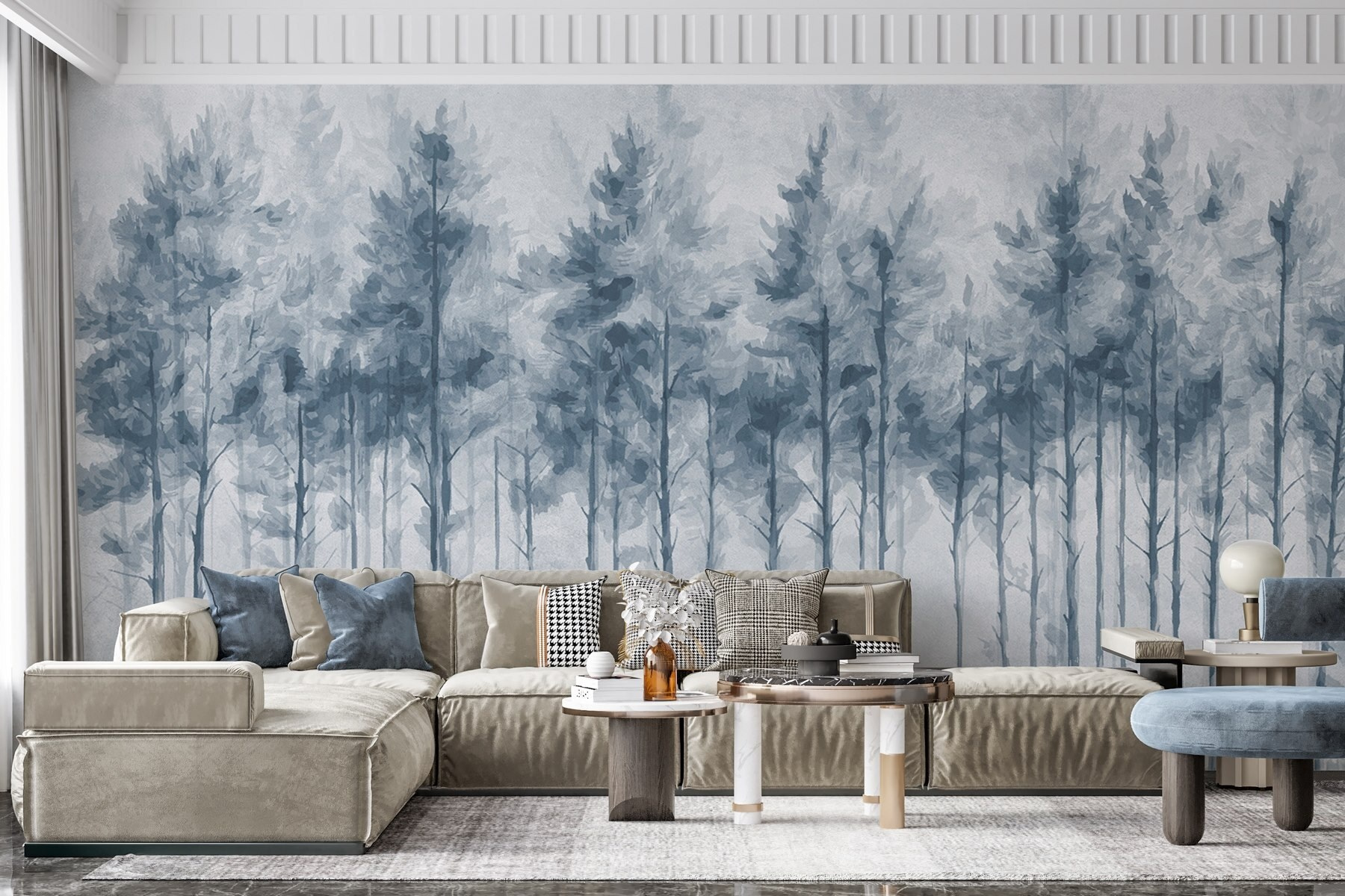 Verwandeln Sie Ihren Raum in ein ruhiges Waldgebiet mit dieser bezaubernden Fototapete, die eine ruhige Baumgruppe zeigt. Holen Sie sich das Flüstern der Natur direkt in Ihr Zuhause! Die kühlen Blau- und Grautöne schaffen eine beruhigende Atmosphäre, perfekt für gemütliche Abende oder einen friedlichen Arbeitsbereich. Stellen Sie sich vor, Sie schlürfen einen Tee und träumen von Abenteuern im Wald oder machen es sich mit einem guten Buch gemütlich, während Sie sich von der Schönheit der Natur umgeben fühlen. Diese Fototapete verschönert nicht nur die Wände, sondern weckt auch warme Gefühle der Nostalgie – vielleicht eine Erinnerung an das Klettern in den Bäumen in der Kindheit oder an einen epischen Wanderausflug. Verlieren Sie sich in der wunderbaren Stille des Waldes, ganz bequem von Ihrem Lieblingssessel aus. Wer hätte gedacht, dass Bäume so viel Freude ins Haus bringen können?