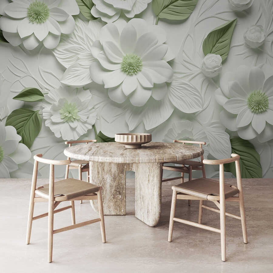 Verwandeln Sie jeden Raum in eine heitere Oase mit dieser atemberaubenden Fototapete, die zarte weiße und grüne Blumen zeigt. Es ist, als ob man sich einen Garten ins Haus holt, nur ohne die lästigen Käfer. Stellen Sie sich vor, wie Sie in einer sonnenbeschienenen Ecke an einem Kaffee nippen, umgeben von Blüten, die nie verwelken. Die filigranen Designs mischen Eleganz mit einem Hauch von Laune und lassen jeden Blick wie eine kleine Flucht erscheinen. Perfekt für eine leere Wand, die nach ein wenig Liebe verlangt, oder sogar als Akzent, um die Dinge aufzupeppen. Die Schönheit der Natur zu Hause, ohne dass man einen grünen Daumen braucht – wer würde das nicht wollen?