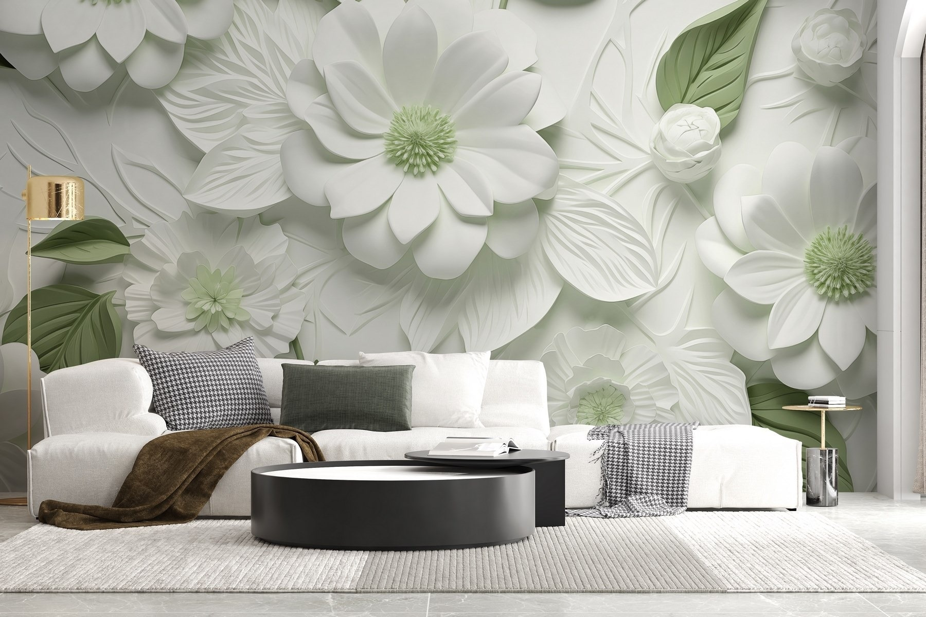 Verwandeln Sie jeden Raum in eine heitere Oase mit dieser atemberaubenden Fototapete, die zarte weiße und grüne Blumen zeigt. Es ist, als ob man sich einen Garten ins Haus holt, nur ohne die lästigen Käfer. Stellen Sie sich vor, wie Sie in einer sonnenbeschienenen Ecke an einem Kaffee nippen, umgeben von Blüten, die nie verwelken. Die filigranen Designs mischen Eleganz mit einem Hauch von Laune und lassen jeden Blick wie eine kleine Flucht erscheinen. Perfekt für eine leere Wand, die nach ein wenig Liebe verlangt, oder sogar als Akzent, um die Dinge aufzupeppen. Die Schönheit der Natur zu Hause, ohne dass man einen grünen Daumen braucht – wer würde das nicht wollen?
